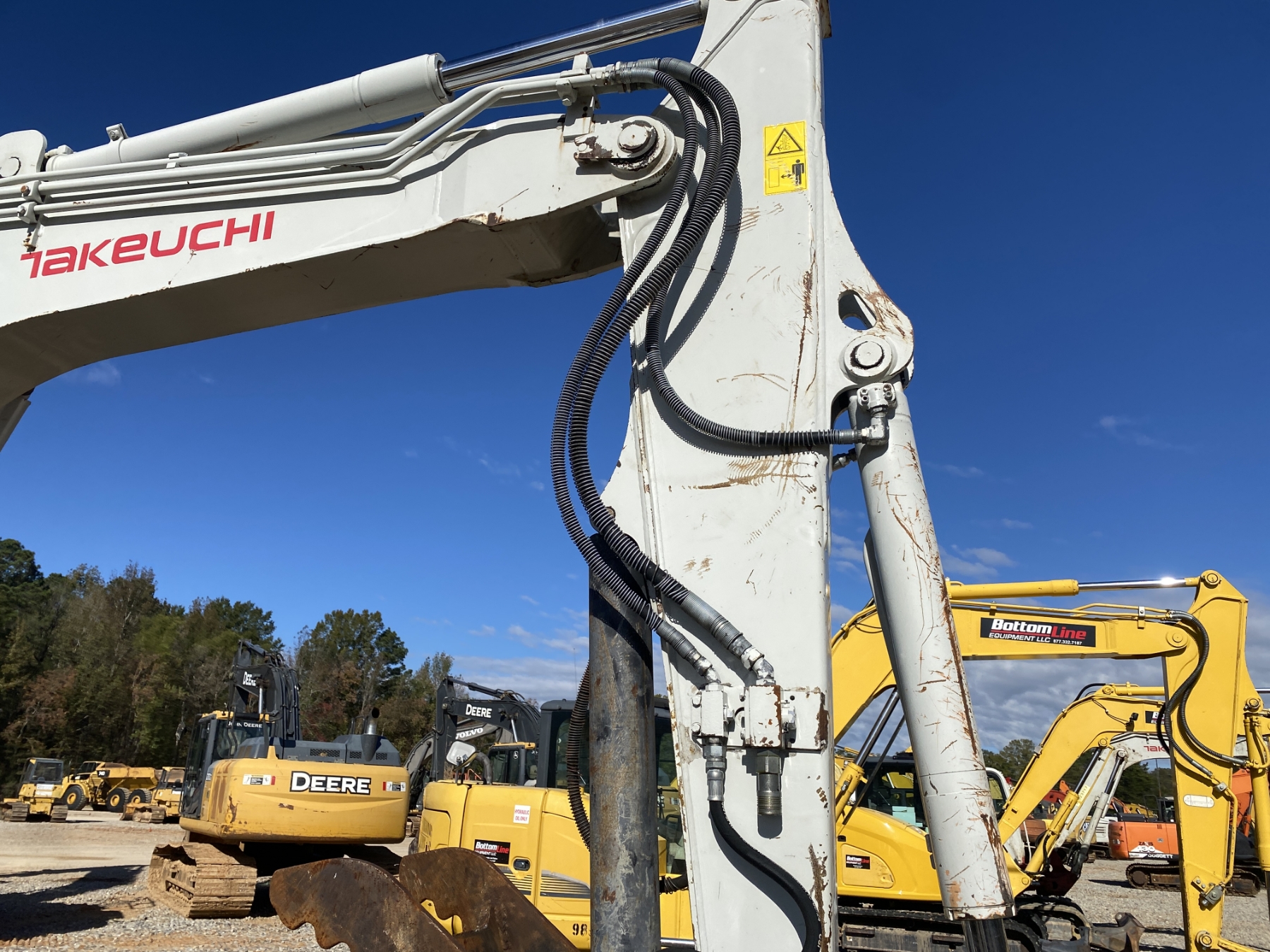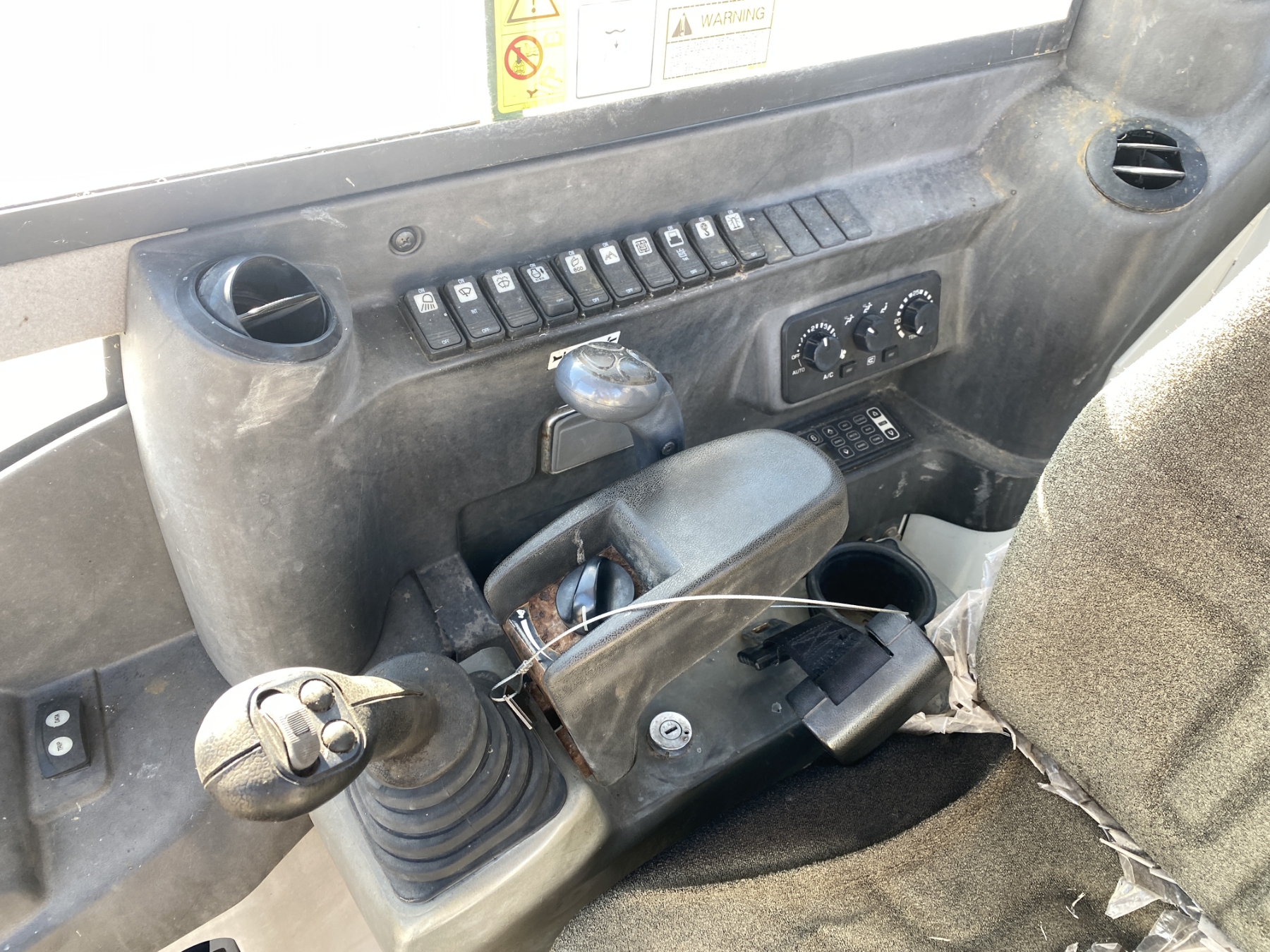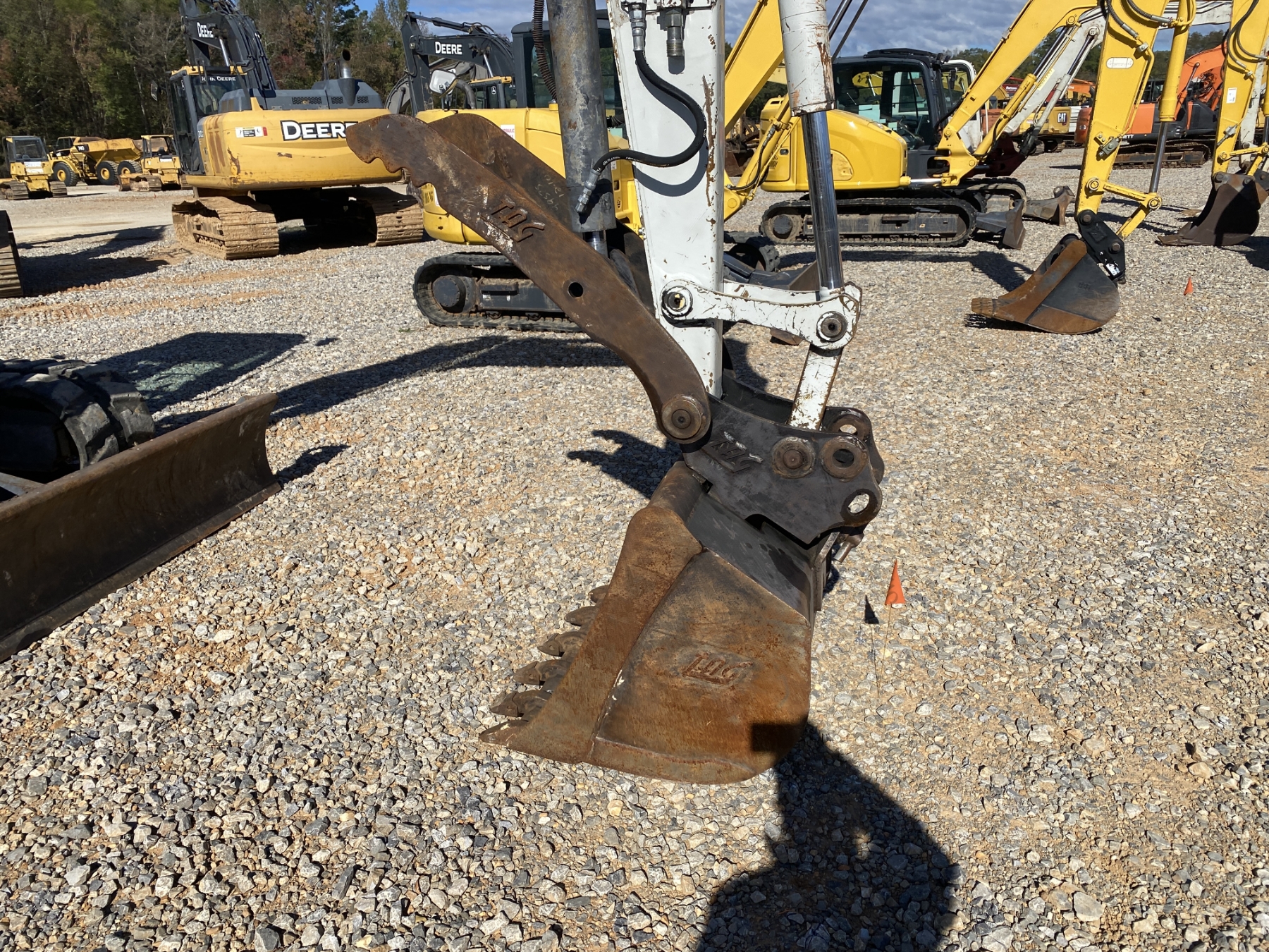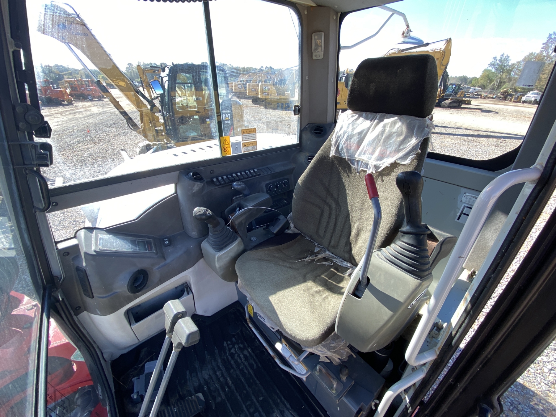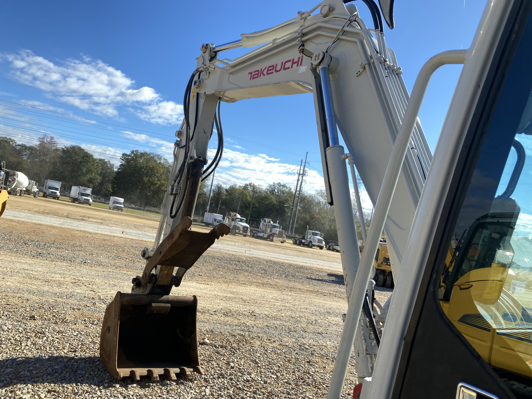 6' 10" stick, 36" bucket, coupler, hyd thumb, aux hyd, blade, rubber tracks, cab, A/C