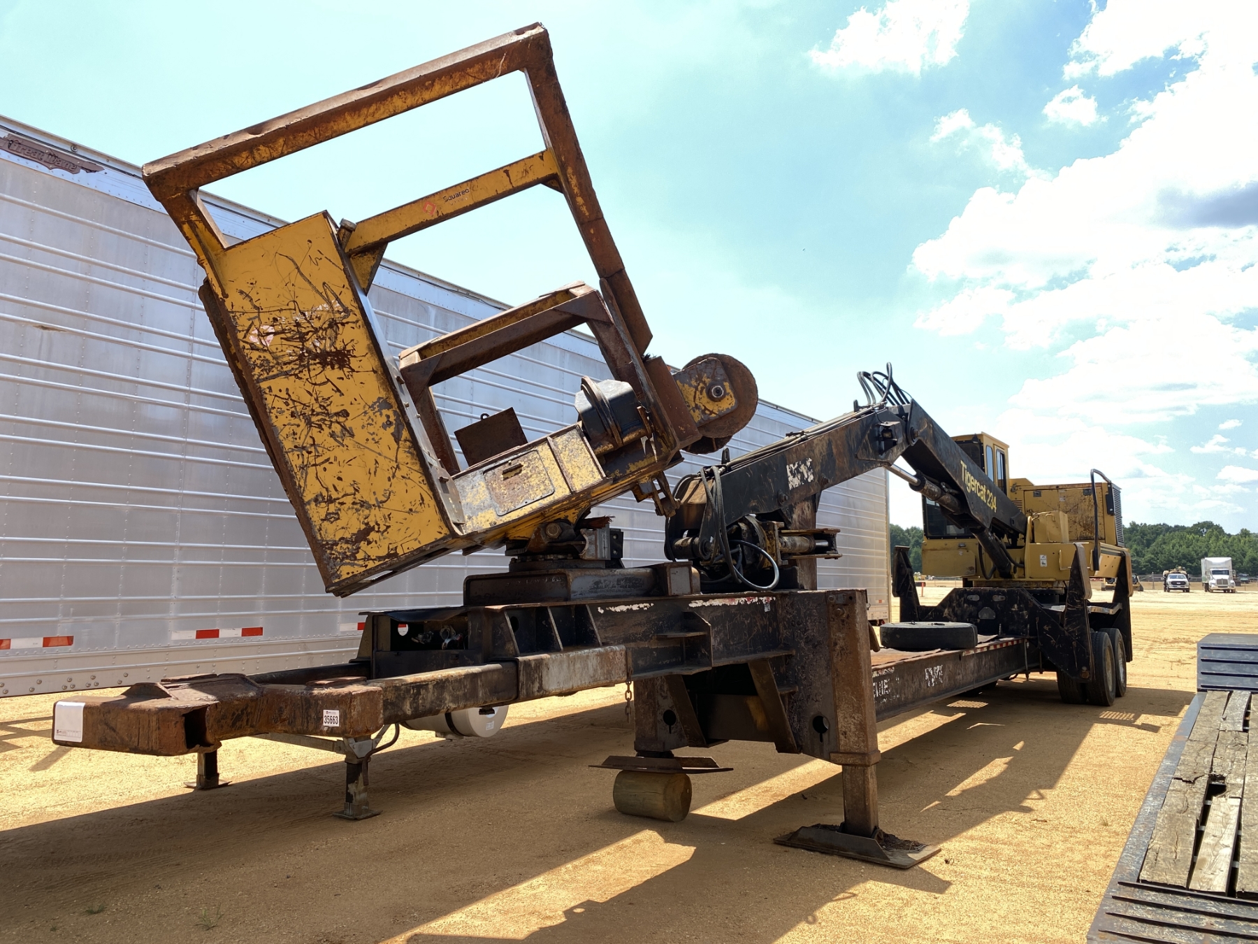 R Squared Delimber, cab, A/C, mtd on Big John trailer, hyd landing gear