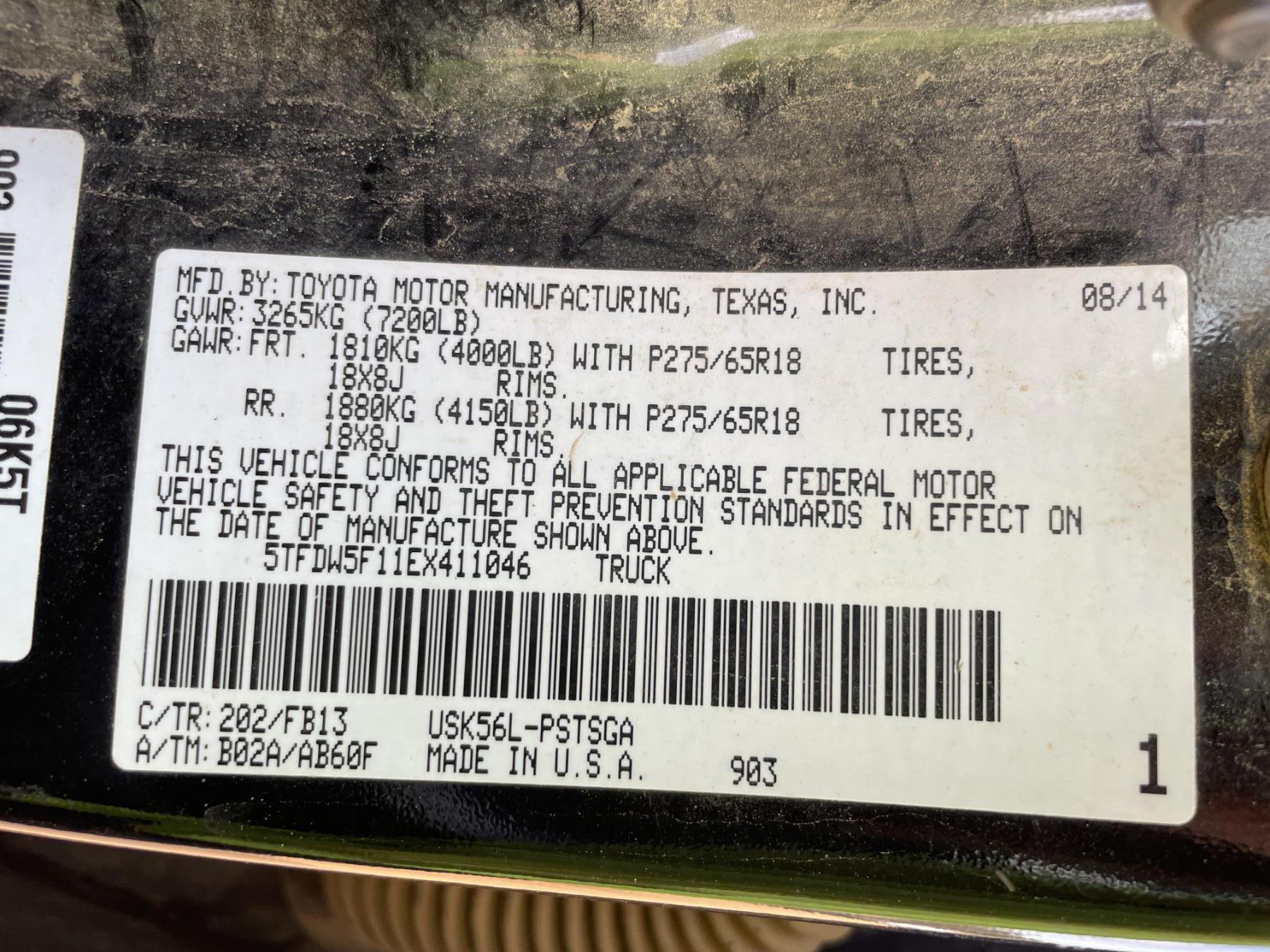Vehicle ID Number: 5TFDW5F11EX411046