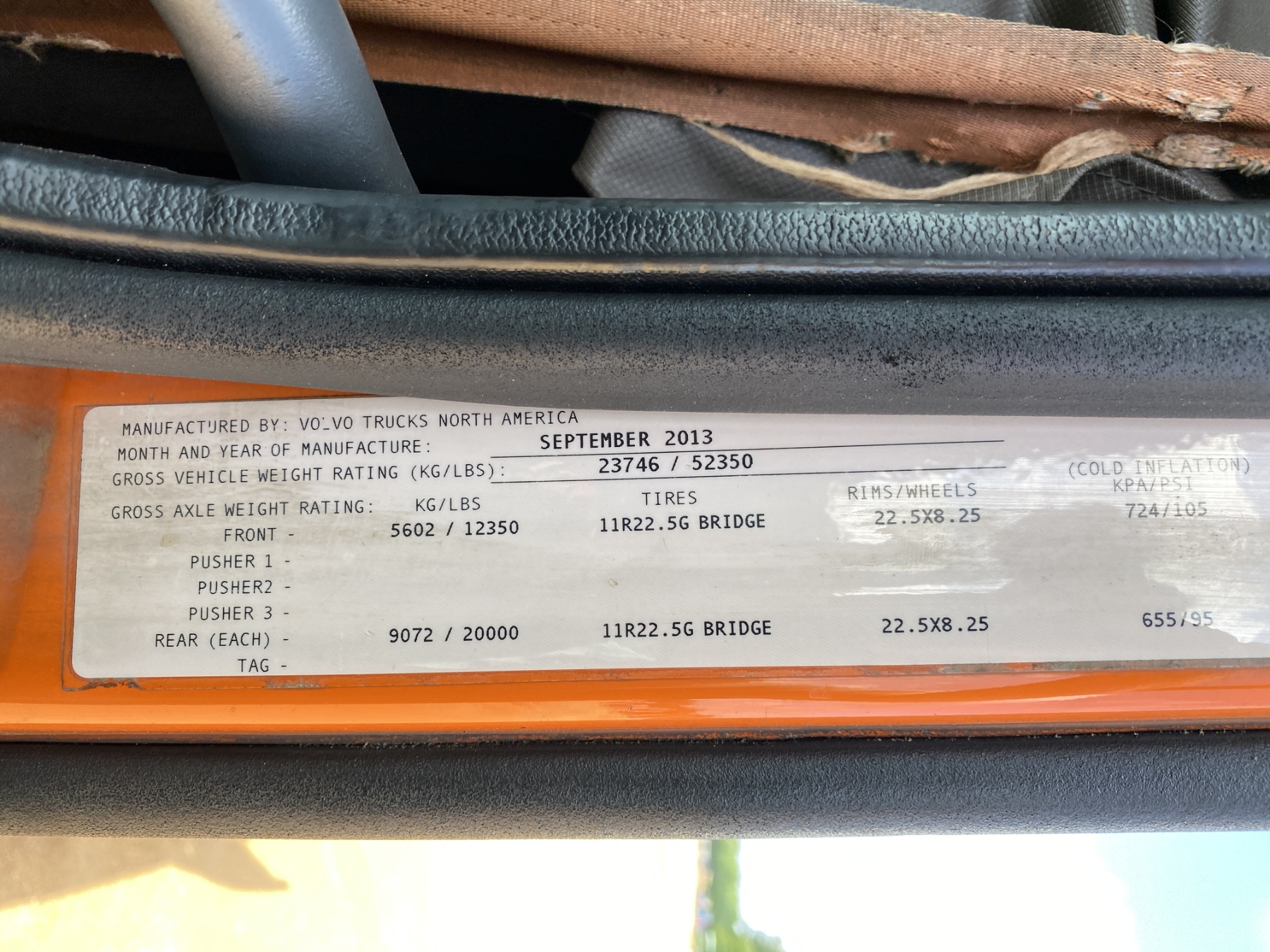T/A, 455 HP Volvo D13 engine, A/T, 40K rears, air ride, 12,350 lb. front, 225" W/B, 11R22.5 tires, all alum