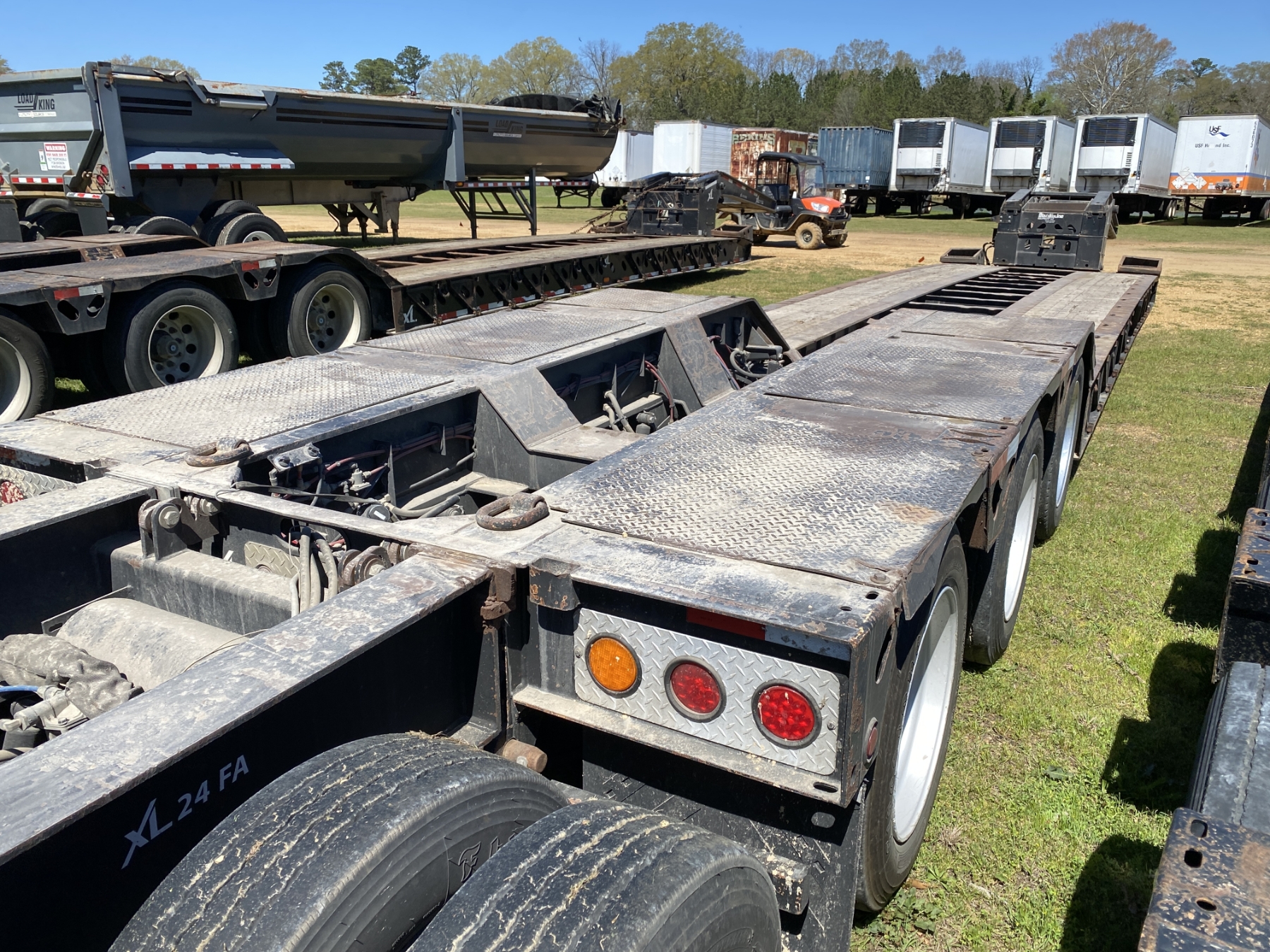 Tri Axle, detach, 26' well, 102" width, excavator trough, covered wheel wells, XL24FA flip axle (SN: EL013949), air ride, 255/70R22.5 tires