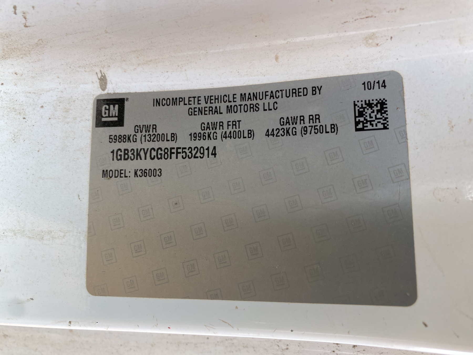 Vehicle ID Number: 1GB3KYCG8FF532914