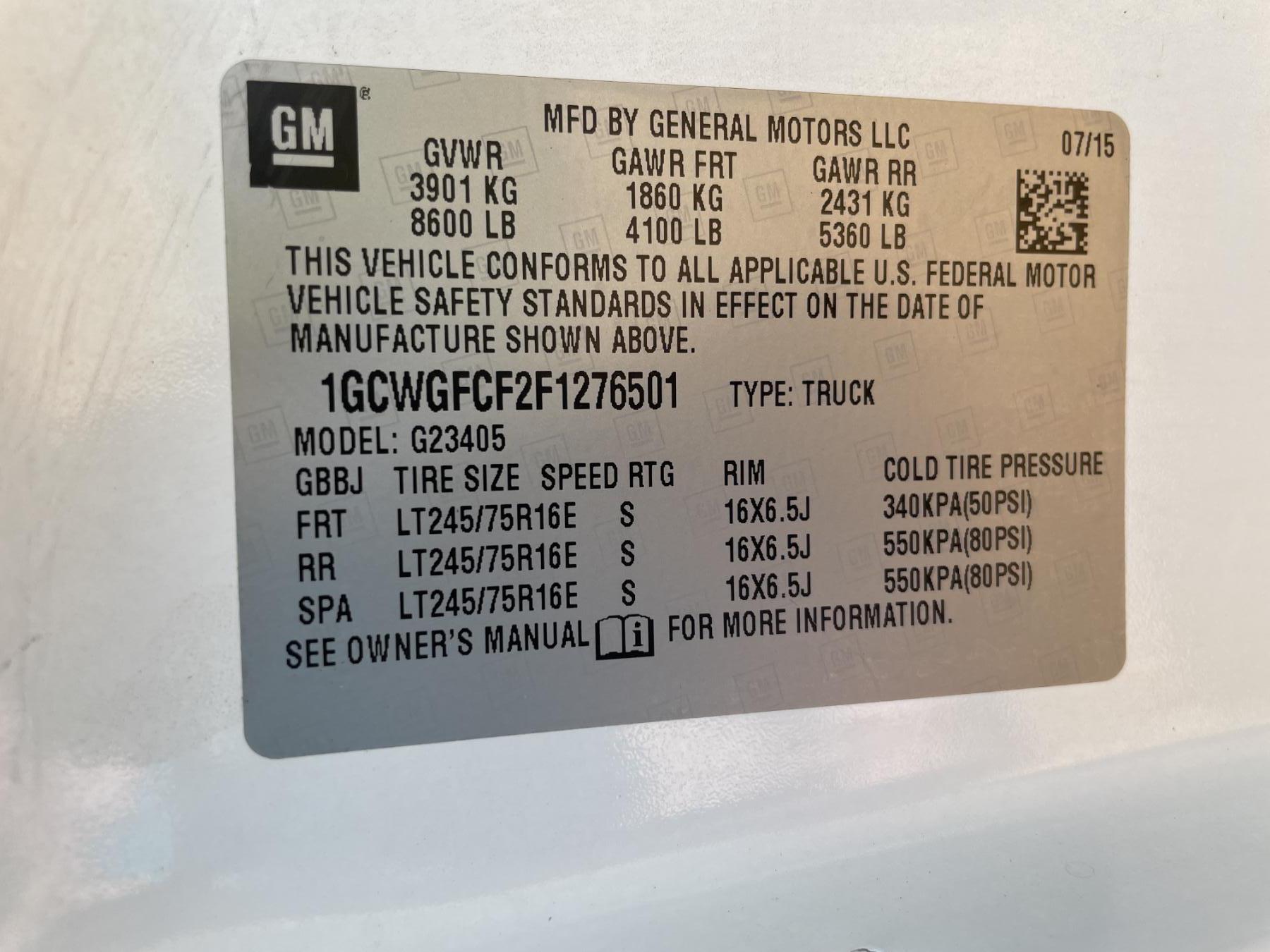 Vehicle ID Number: 1GCWGFCF2F1276501