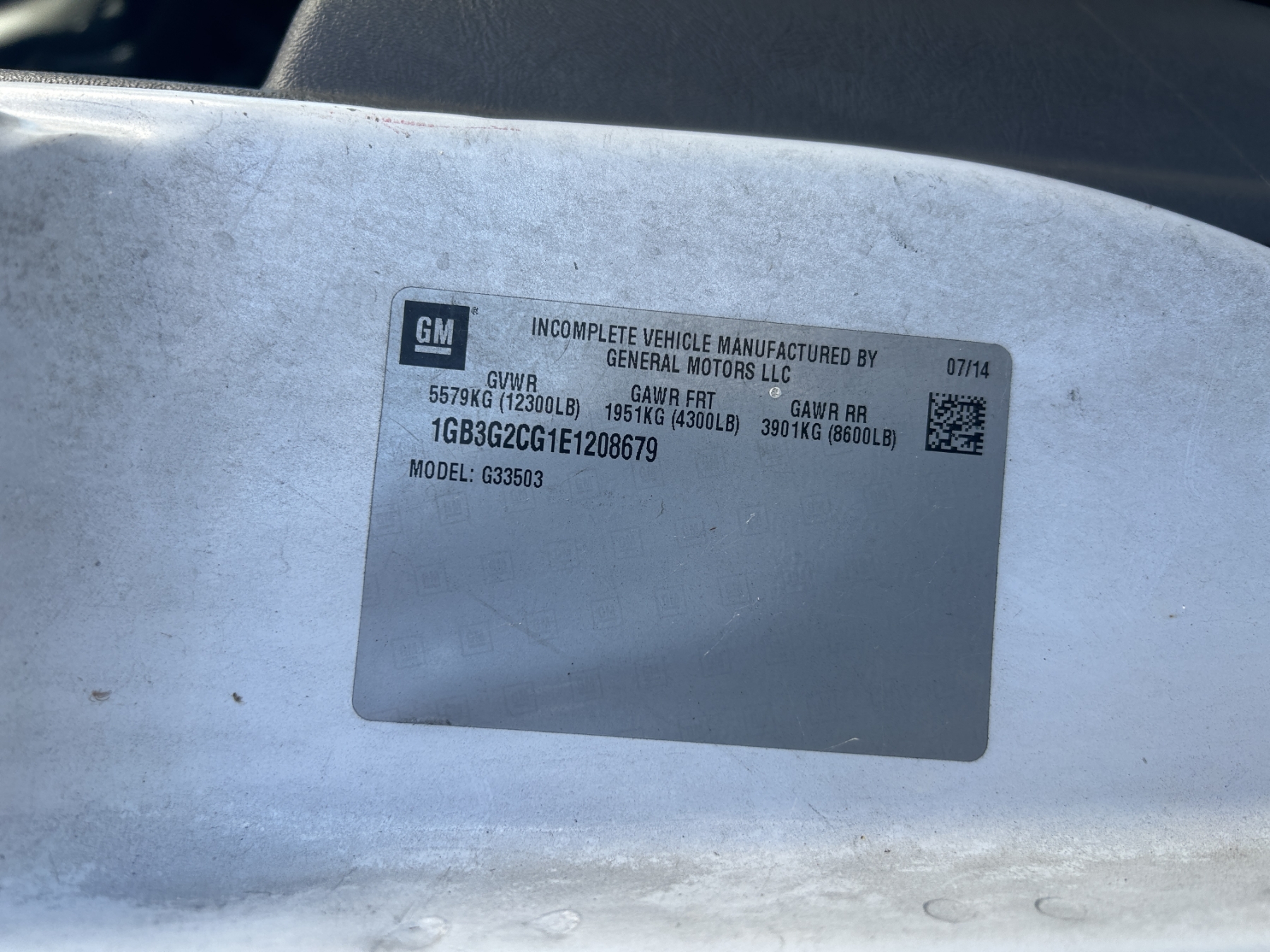 Vehicle ID Number: 1GB3G2CG1E1208679