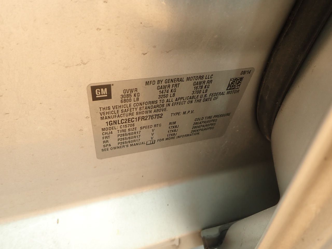 Vehicle ID Number: 1GNLC2EC1FR276752