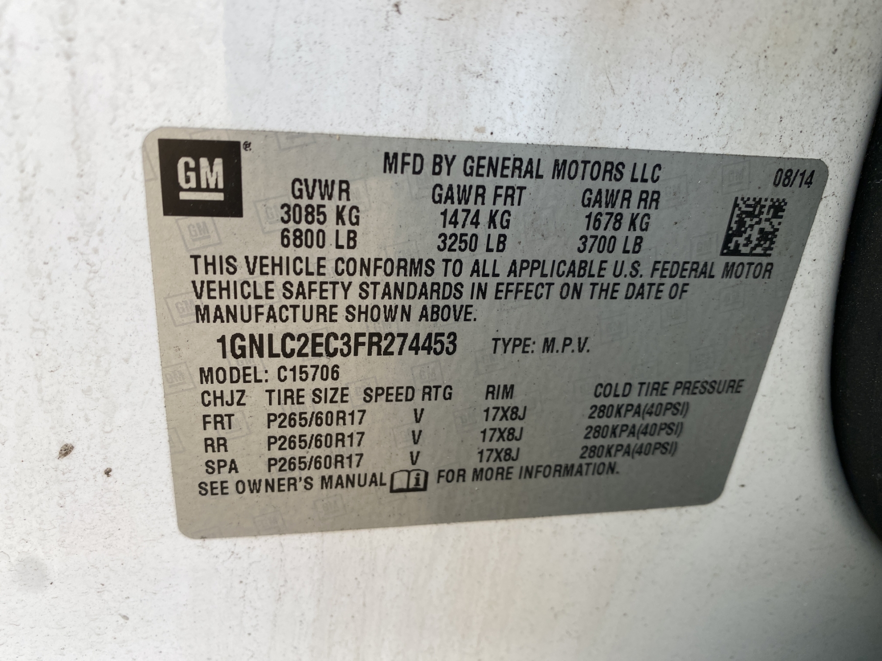 Vehicle ID Number: 1GNLC2EC3FR274453