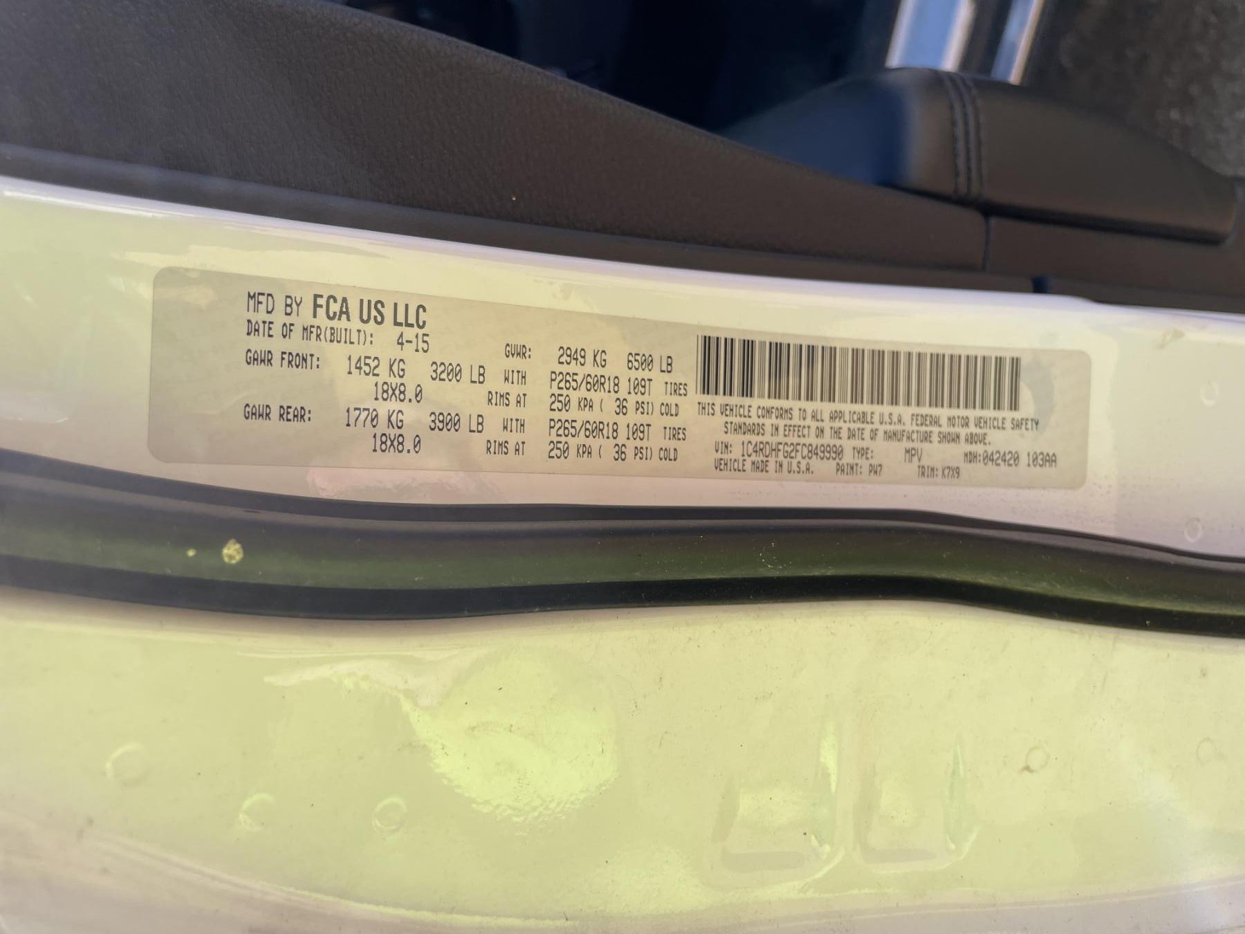 Vehicle ID Number: 1C4RDHFG2FC849990