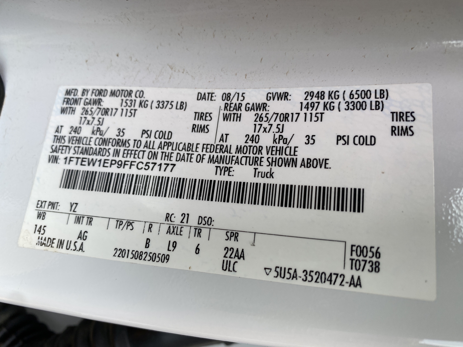 Vehicle ID Number: 1FTEW1EP9FFC57177