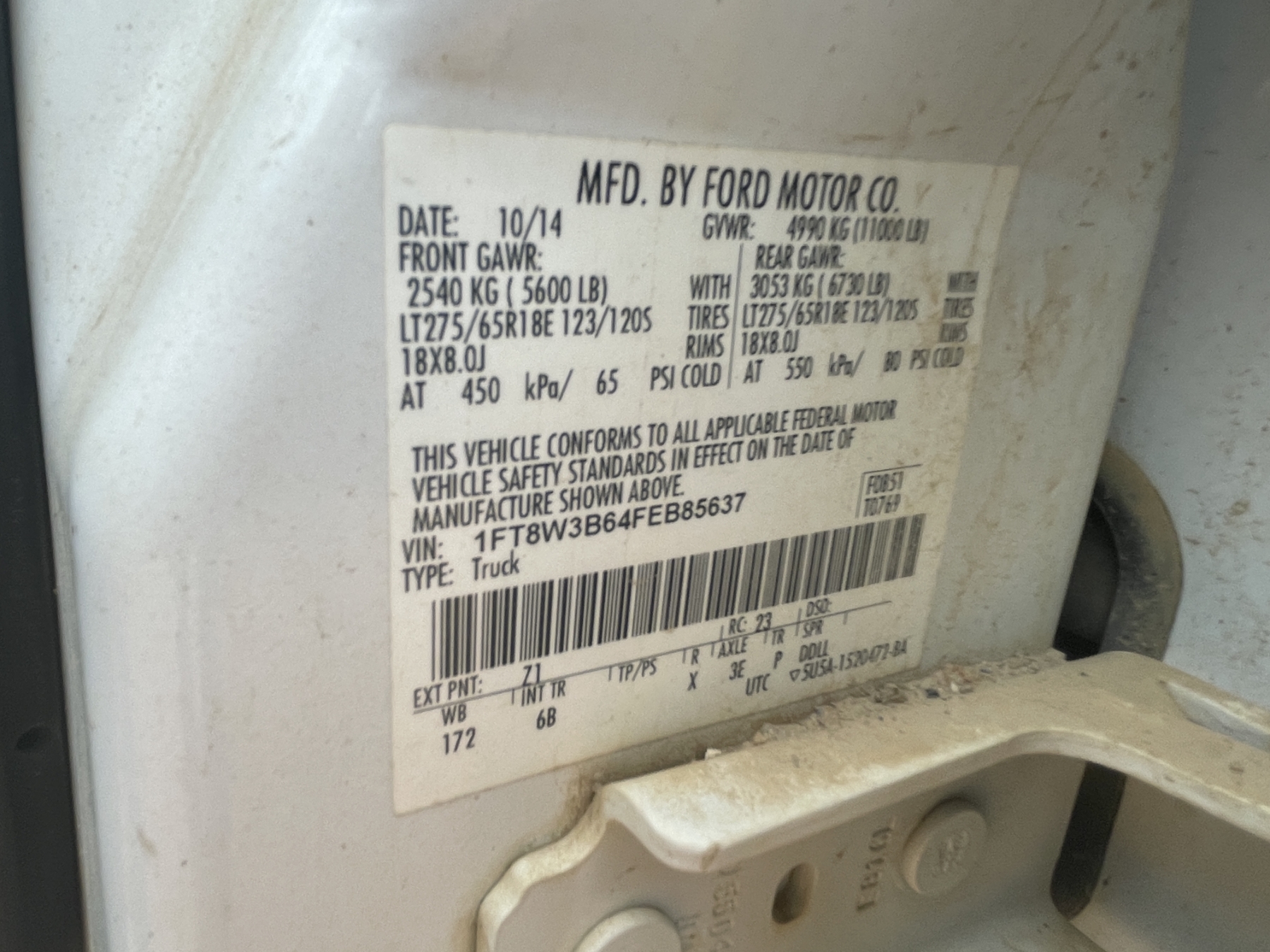 Vehicle ID Number: 1FT8W3B64FEB85637