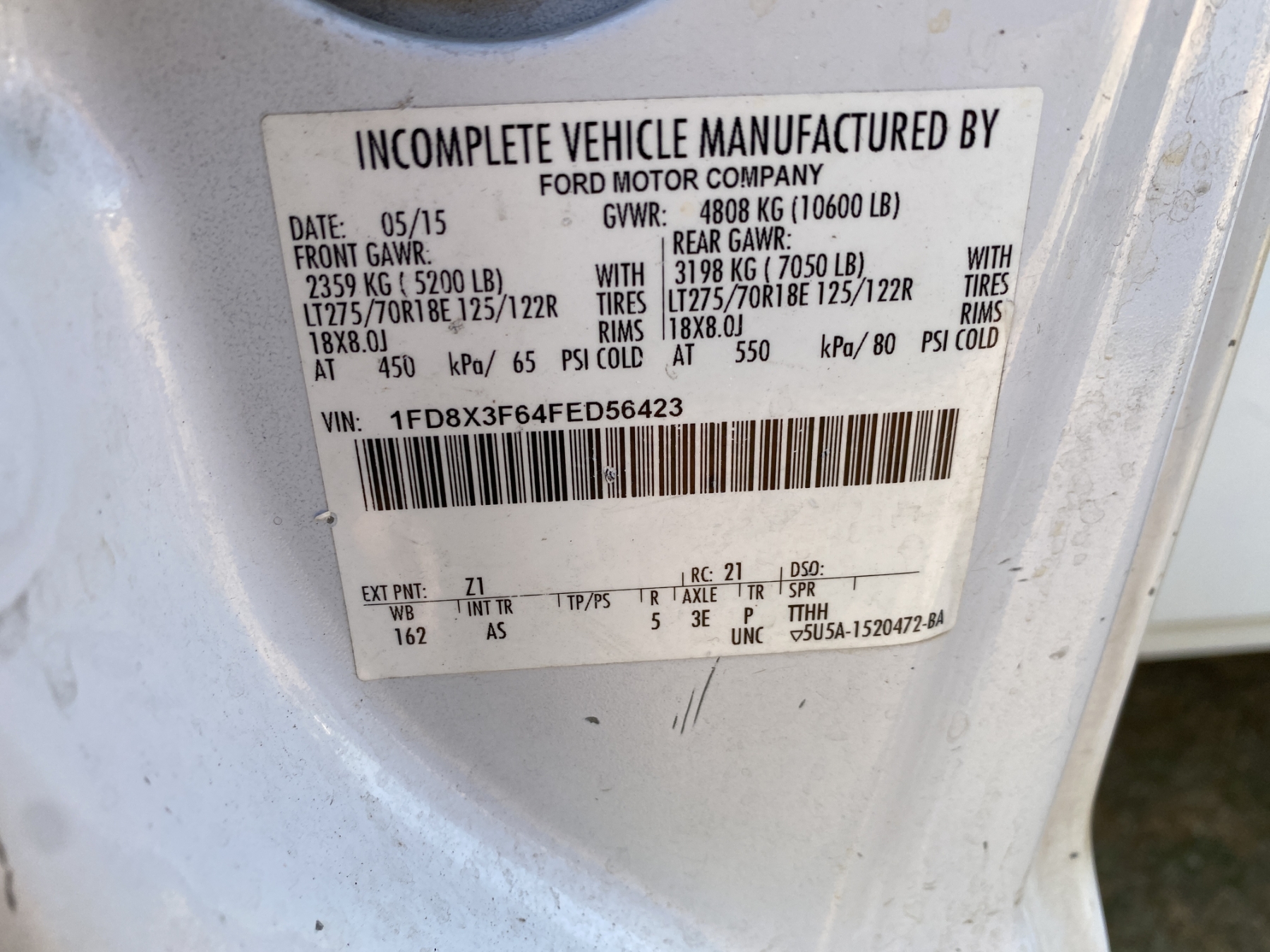 Vehicle ID Number: 1FDBX3F64FED56423
