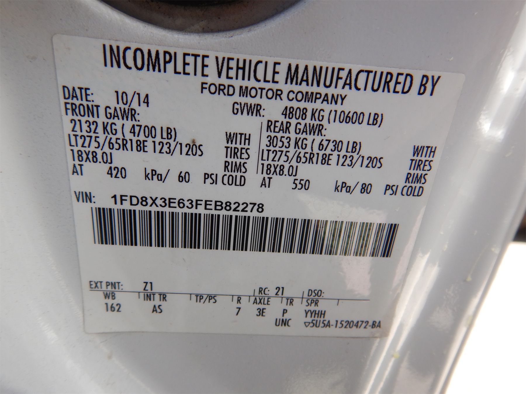 Vehicle ID Number: 1FD8X3E63FEB82278