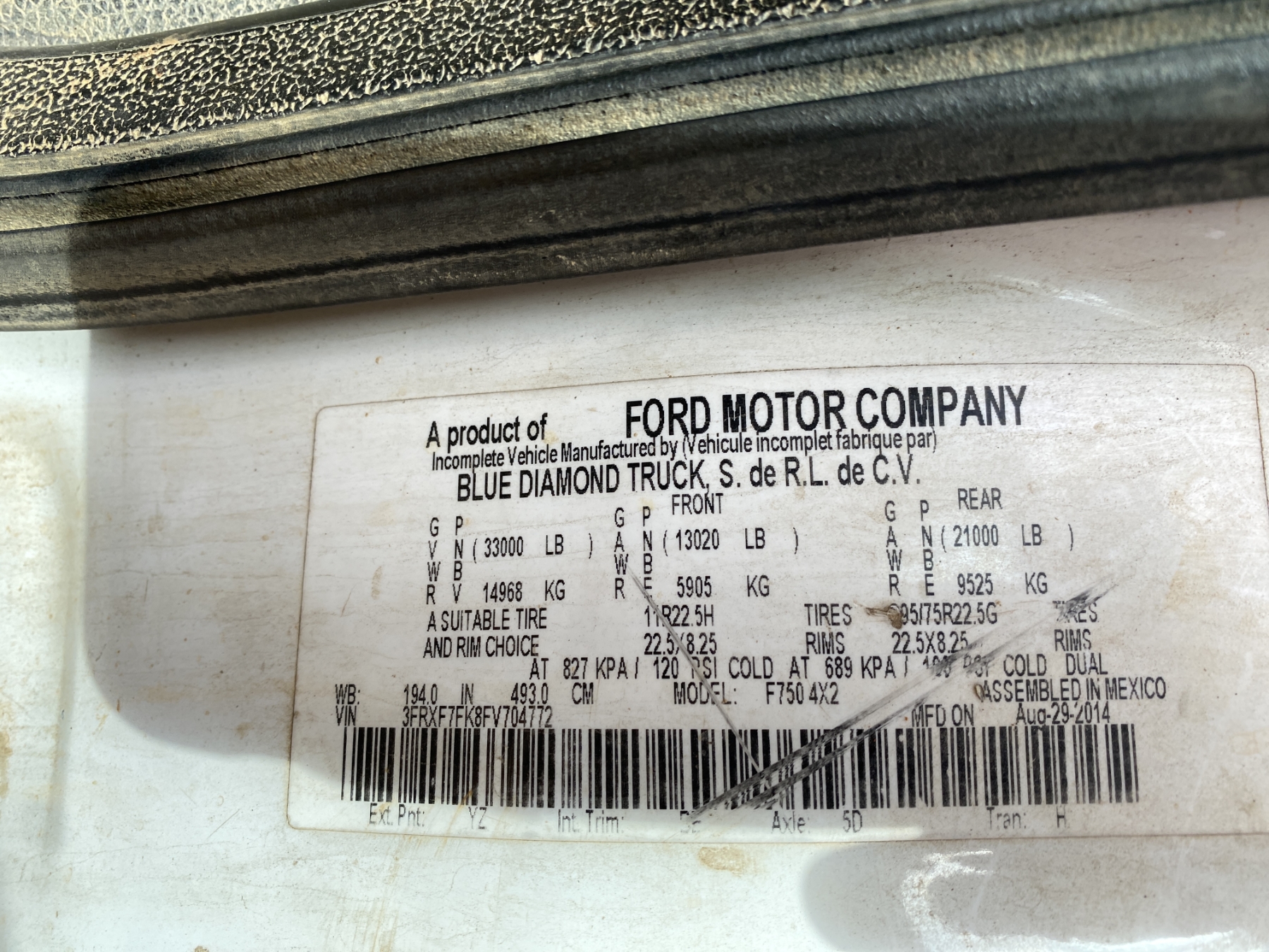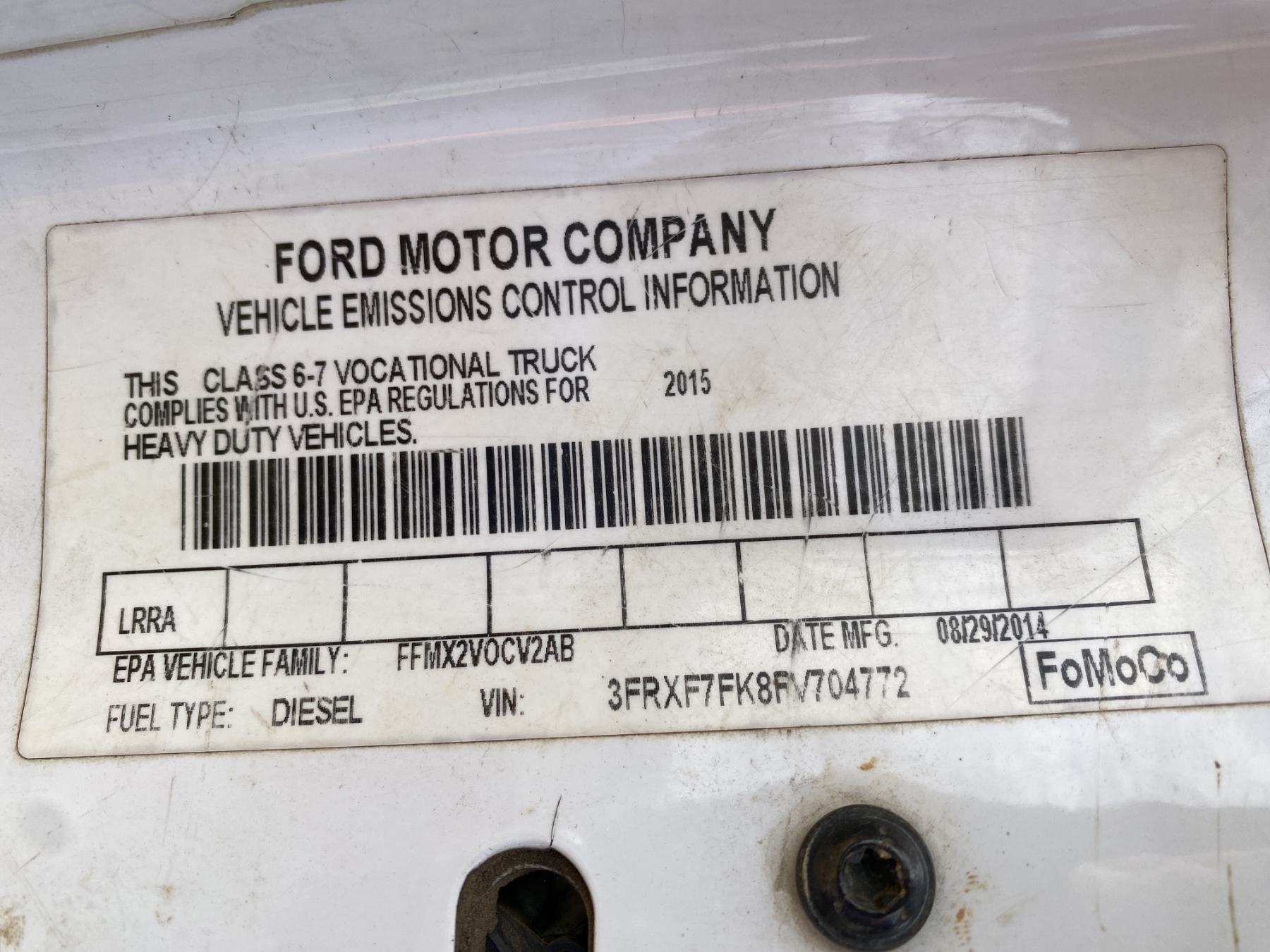 Vehicle ID Number: 3FRXF7FK8FV704772
