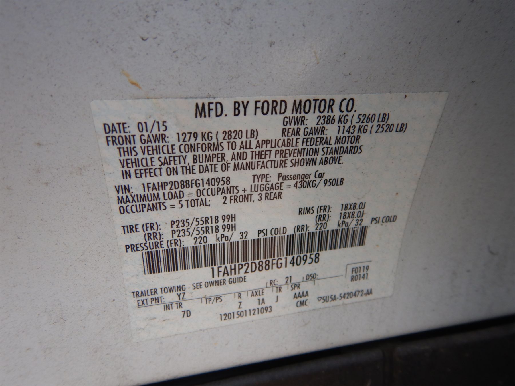 Vehicle ID Number: 1FAHP2D88FG140958