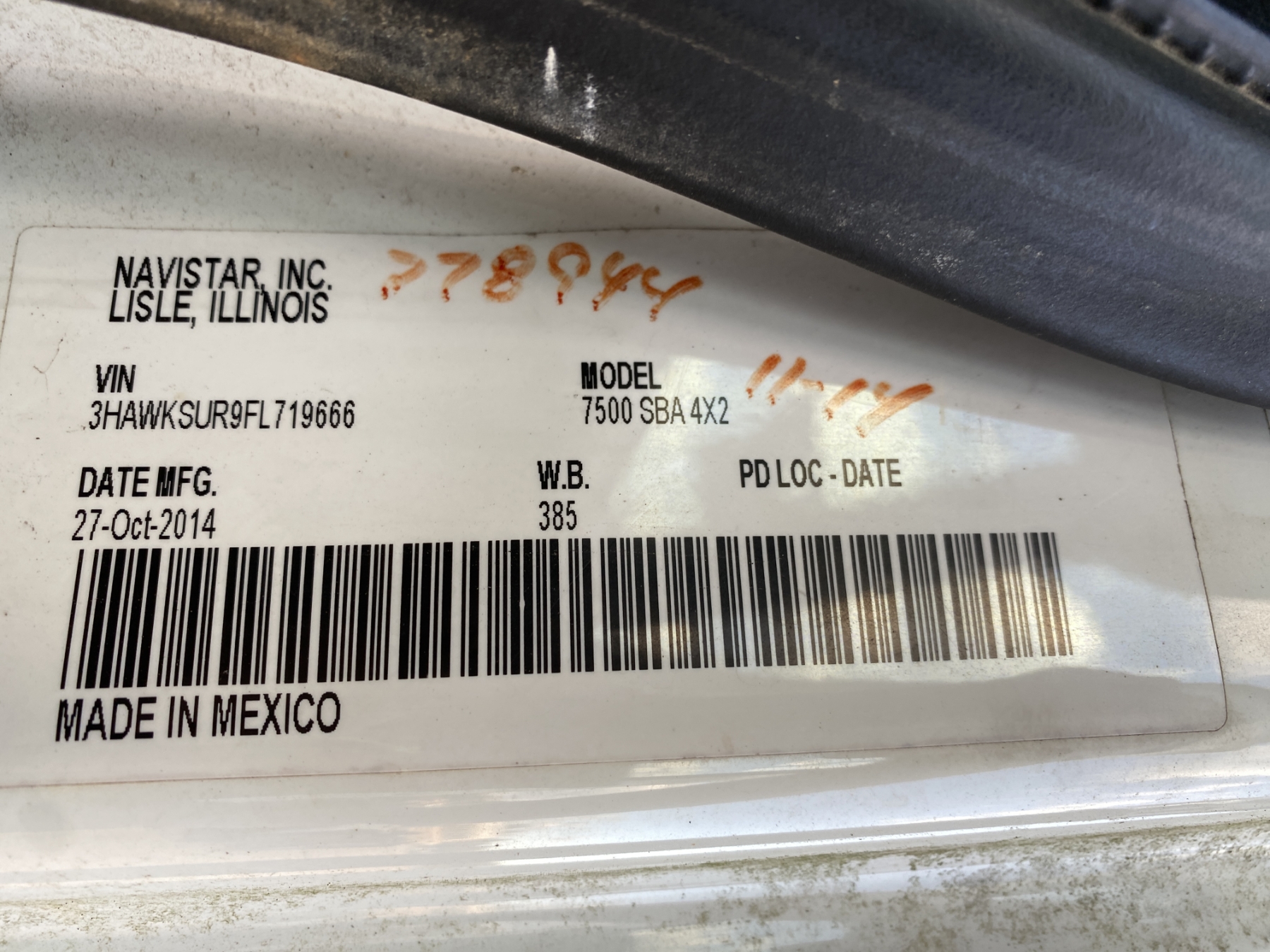 Vehicle ID Number: 3HAWKSUR9FL719666