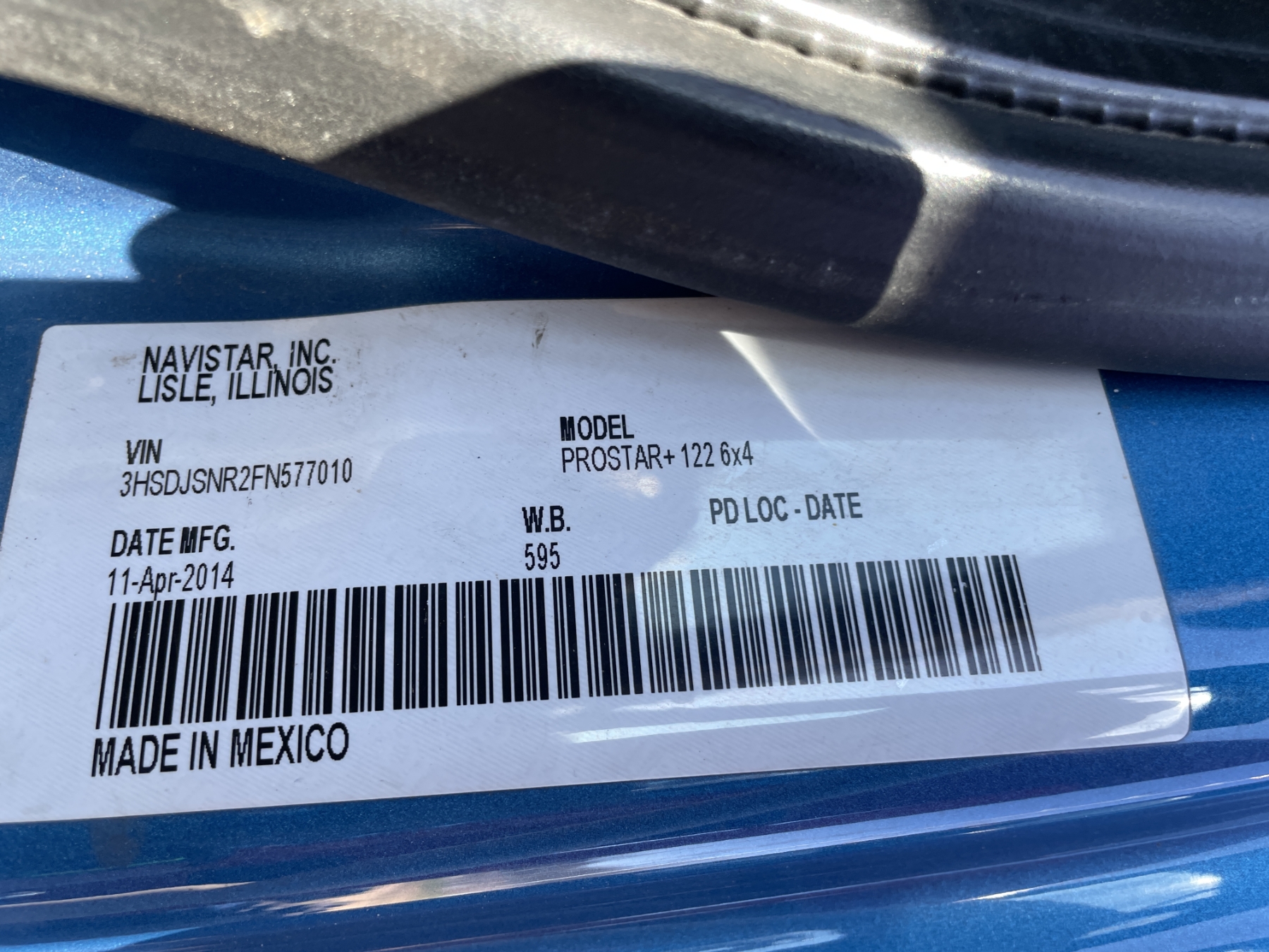 Vehicle ID Number: 3HSDJSNR2FN577010