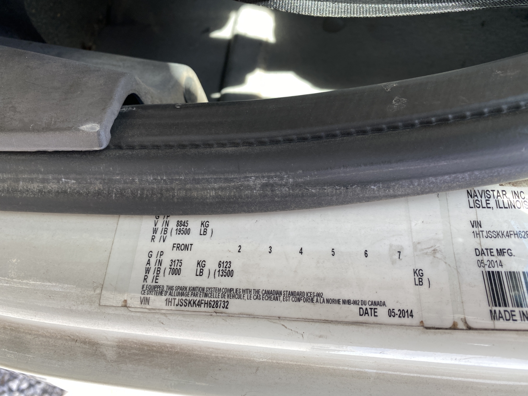 Vehicle ID Number: 1HTJSSKK4FH628732