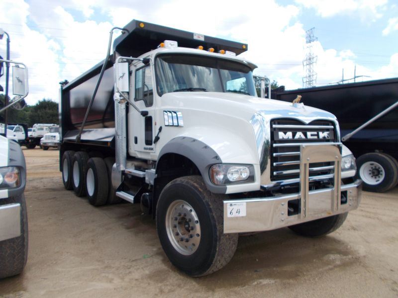 2015 MACK CV713 TRI-AXLE DUMP, S/N 1M2AX07C7FM022283, MP8 445C MACK ENGINE, 10 SPD TRANS, ENGINE BRAKE, 44K REARS, 18,740K FRONT, 20K INTERMEDIATE AXLE, 16' HARD OX DUMP BODY, 22 CU YD CAP, HI-LIFT TAILGATE, 11R24.5 REAR TIRES, 385/65R22.5 FRONT TIRES, DISC WHEELS, ODOMETER READING 25,292 MILES (COUNTY OWNED)