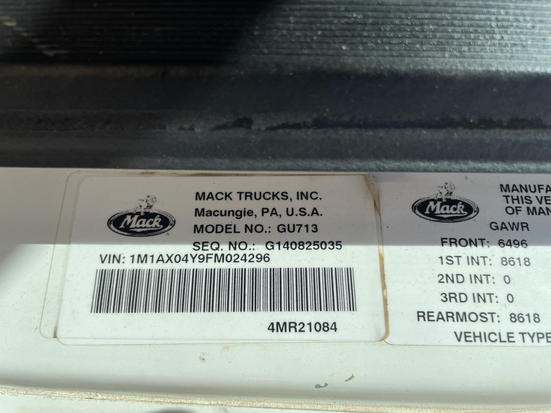 Vehicle ID Number: 1M1AX04Y9FM024296