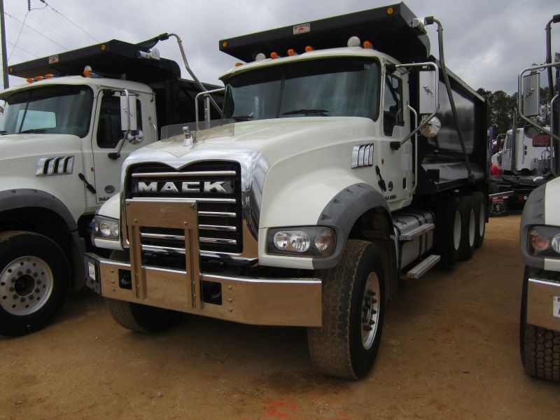 2015 MACK GU713 TRI-AXLE DUMP, S/N 1M2AX09C1FM021272, 425 HP MACK MP8 ENG, ALLISON 4500 RDS AUTO TRANS, 44K REARS, 18K FRONT, ENGINE BRAKE, 16' HARD OX BODY, ELECT TARP, AIR TAILGATE, 11R24.5 REAR TIRES ON STEEL DISC WHEELS, 385/65R22.5 FRONT TIRES ON ALUM DISC WHEELS, ODOMETER READING 60,849 MILES (COUNTY OWNED)
