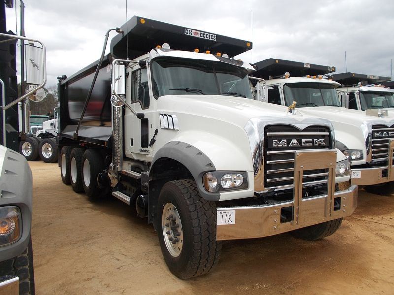 2015 MACK GU713 TRI-AXLE DUMP, S/N 1M2AX09CXFM025269, 425 MACK MP8 ENG, T310M 10 SPD MACK TRANS, 44K REARS, 18K FRONT, ENGINE BRAKE, 16' HARD OX DUMP BODY, ELETRIC TARP, 11R24.5 REAR TIRES ON STEEL DISC WHEELS, 385/65R22.5 FRONT TIRES ON ALUM DISC WHEELS, ODOMETER READING 8,238 MILES (COUNTY OWNED)