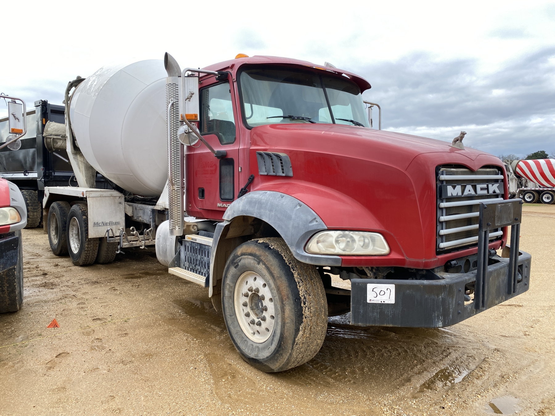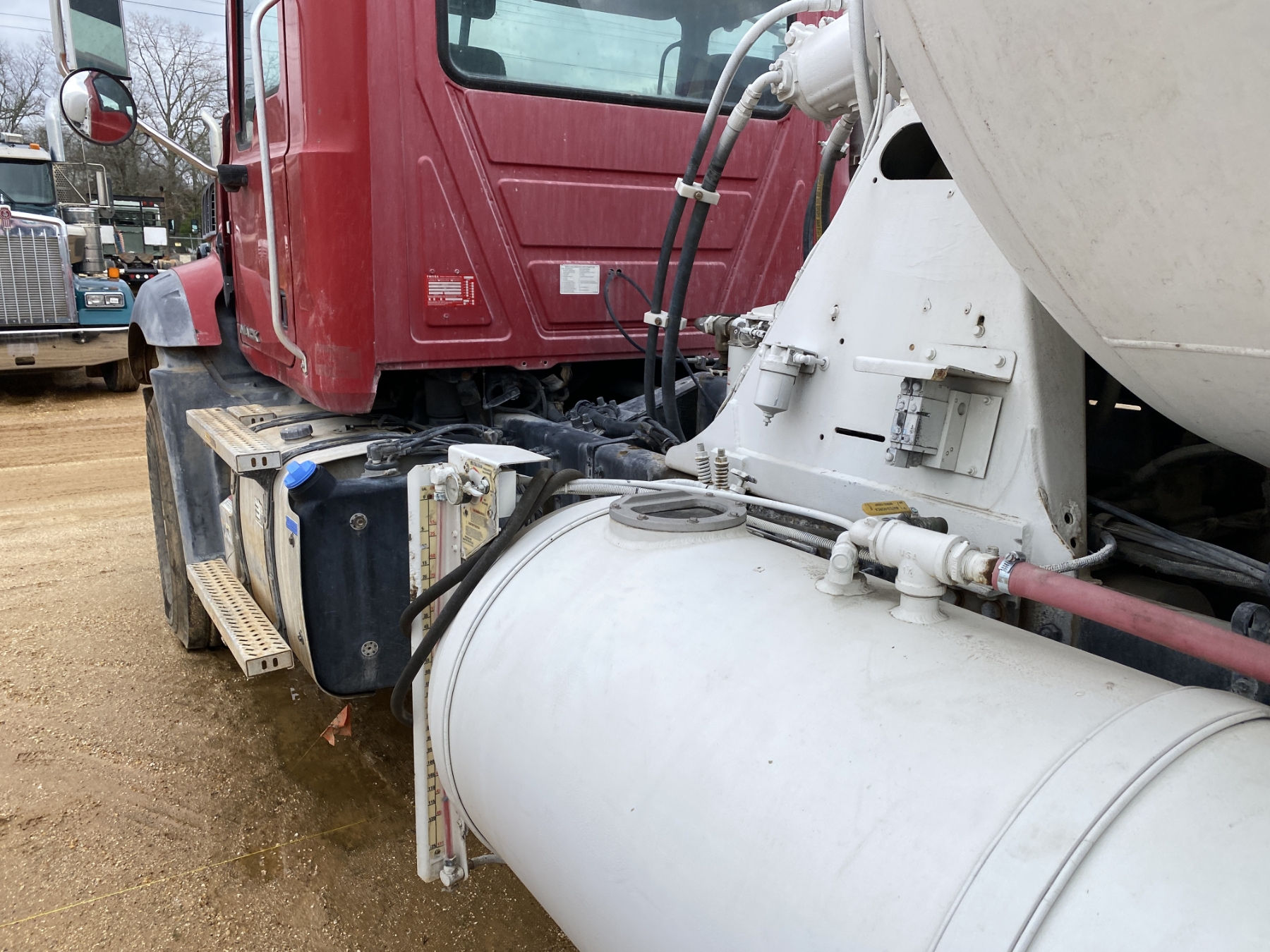T/A, Mack MP7-395 engine, Eaton 8LL trans, 46K rears, 22,800 lb. front, 12.5 Yd. Beck mixer, 11R24.5 rear tires, 425/65R22.5 front tires