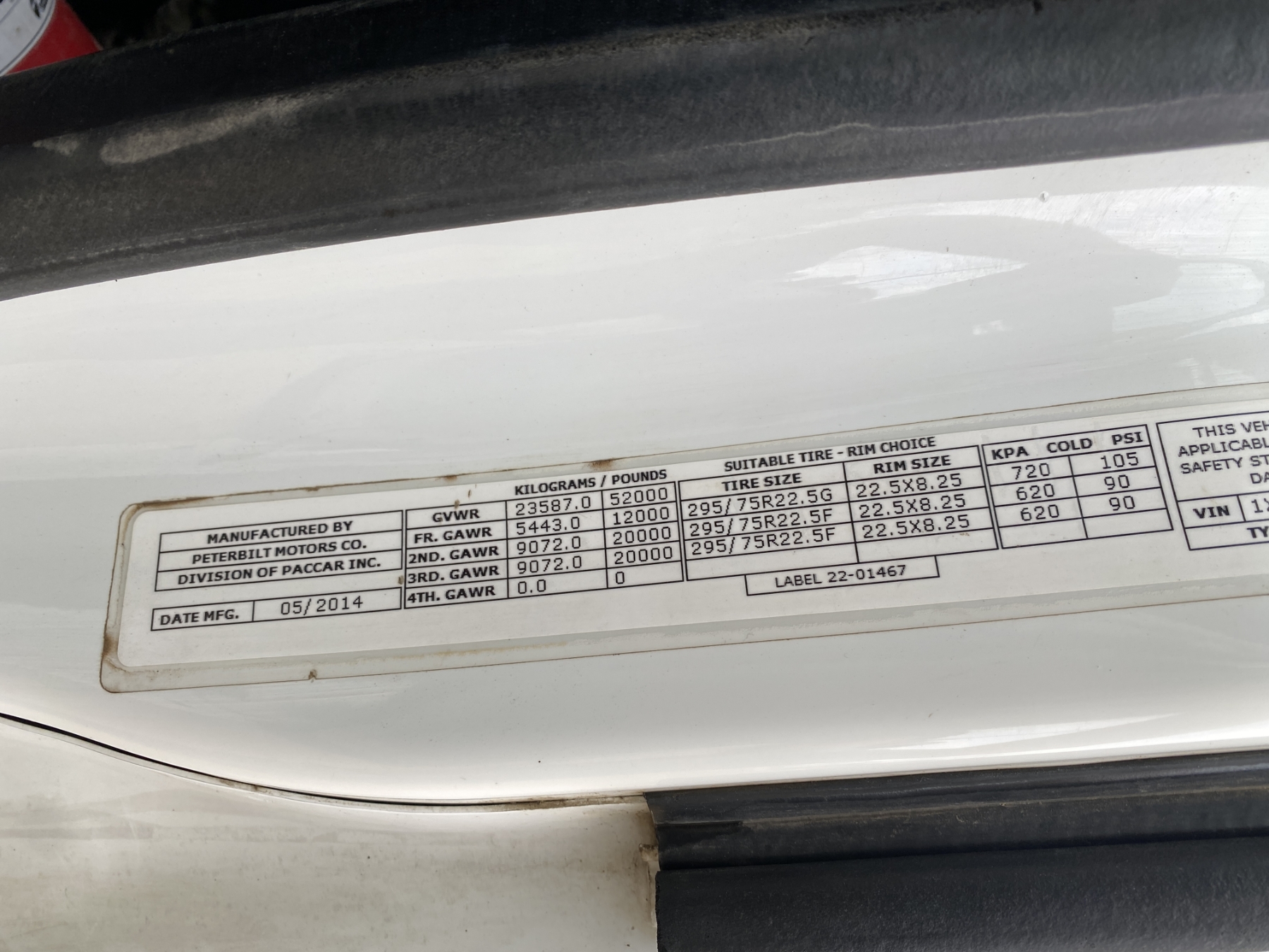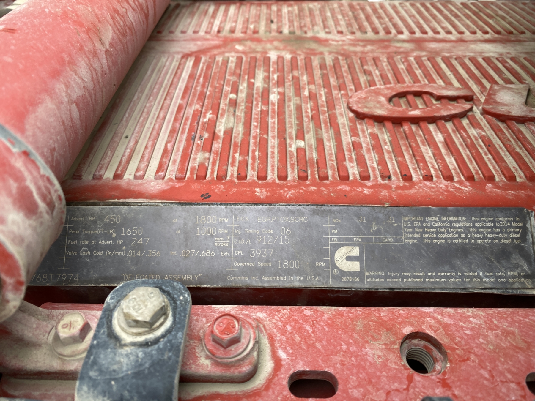 T/A, 450 HP Cummins ISX15 engine, Eaton 10 speed trans, 40K rears, air ride, 12K front, 204" W/B, wet kit, alum headache rack, 11R22.5 tires