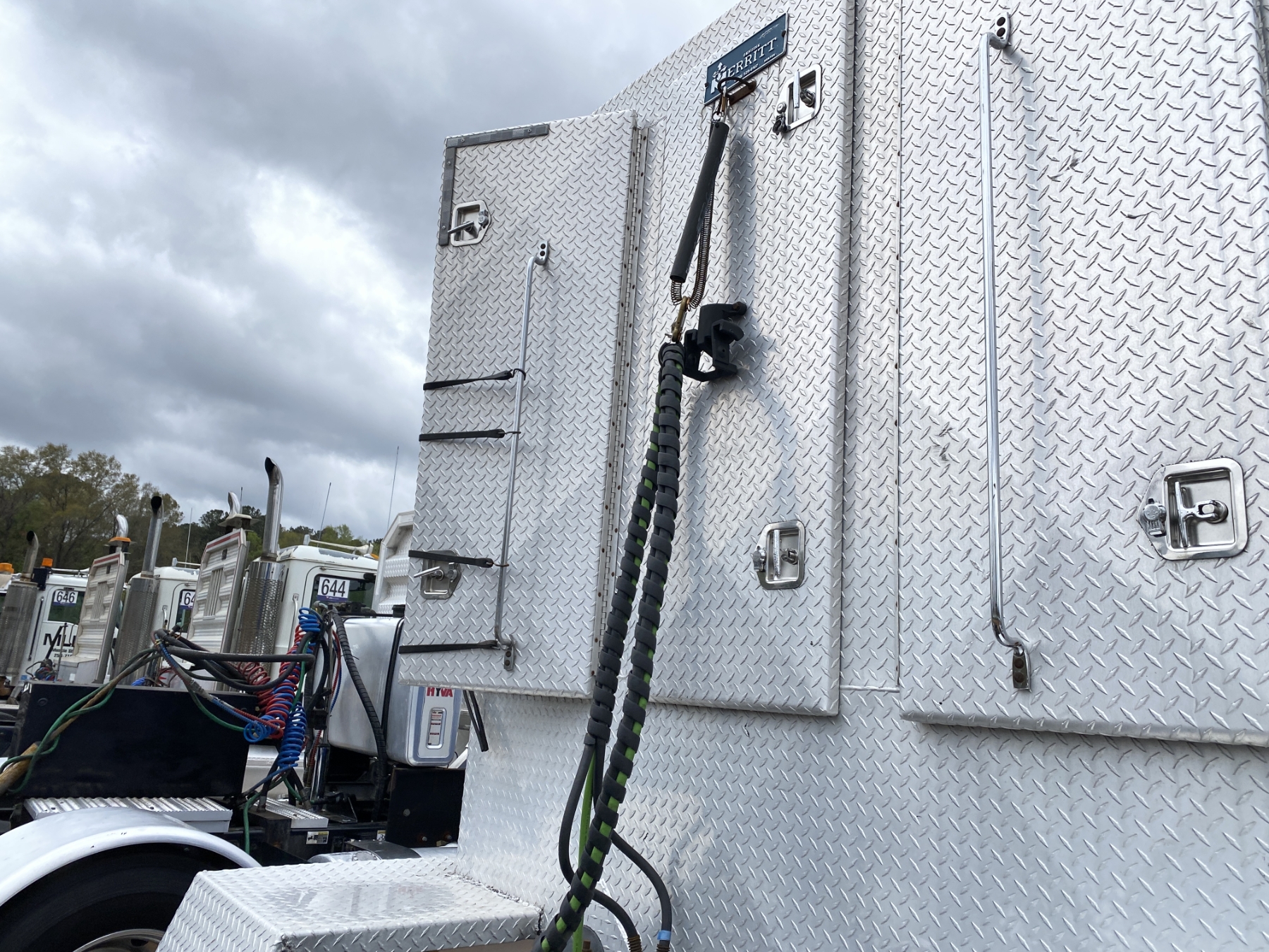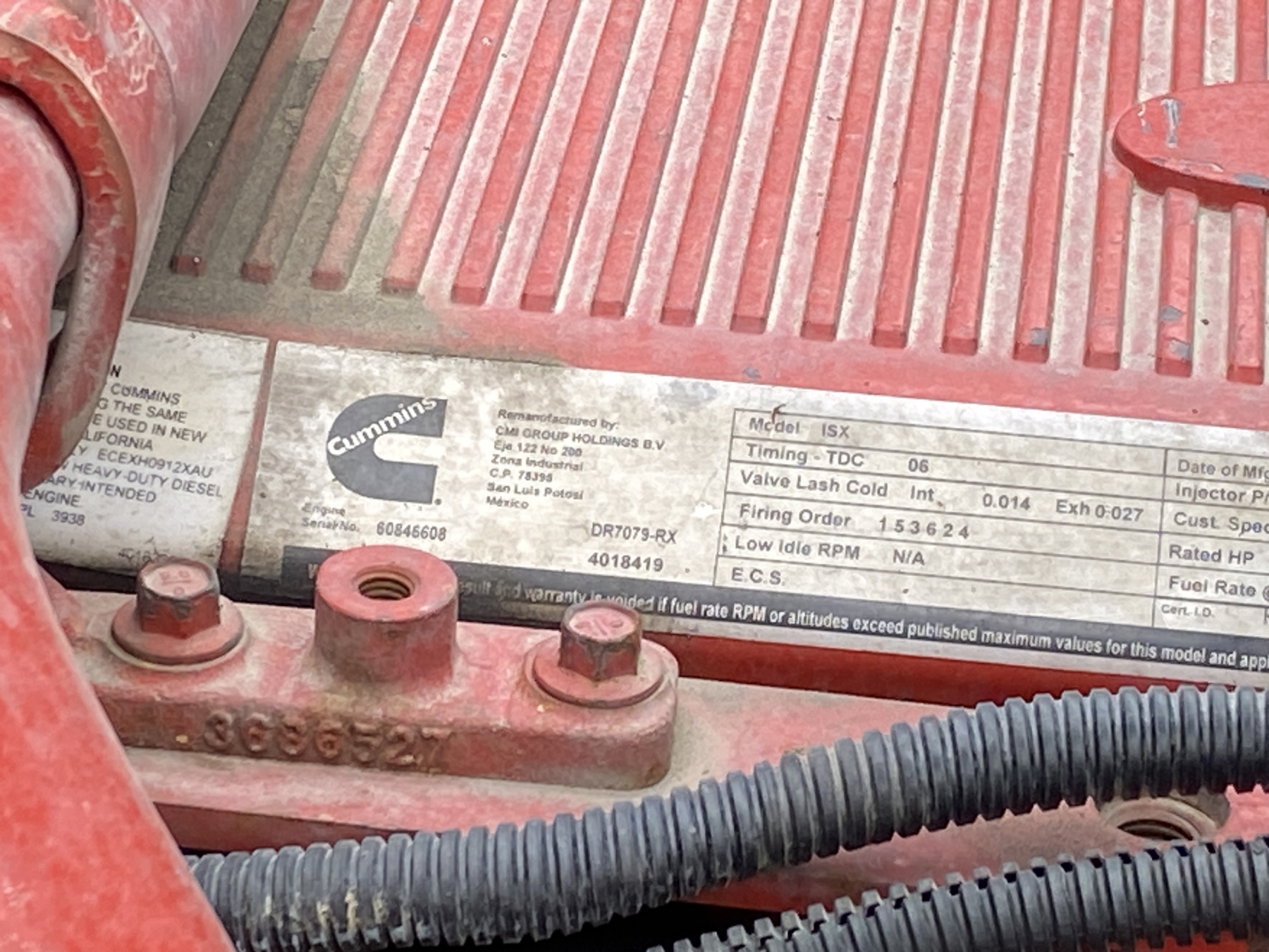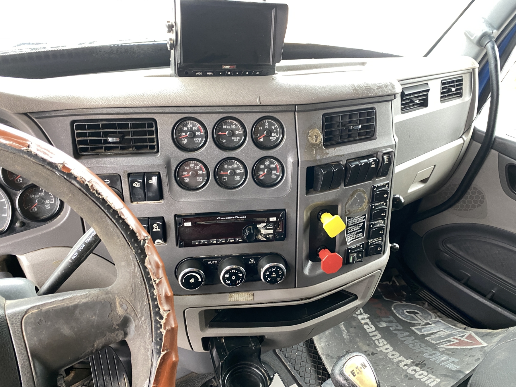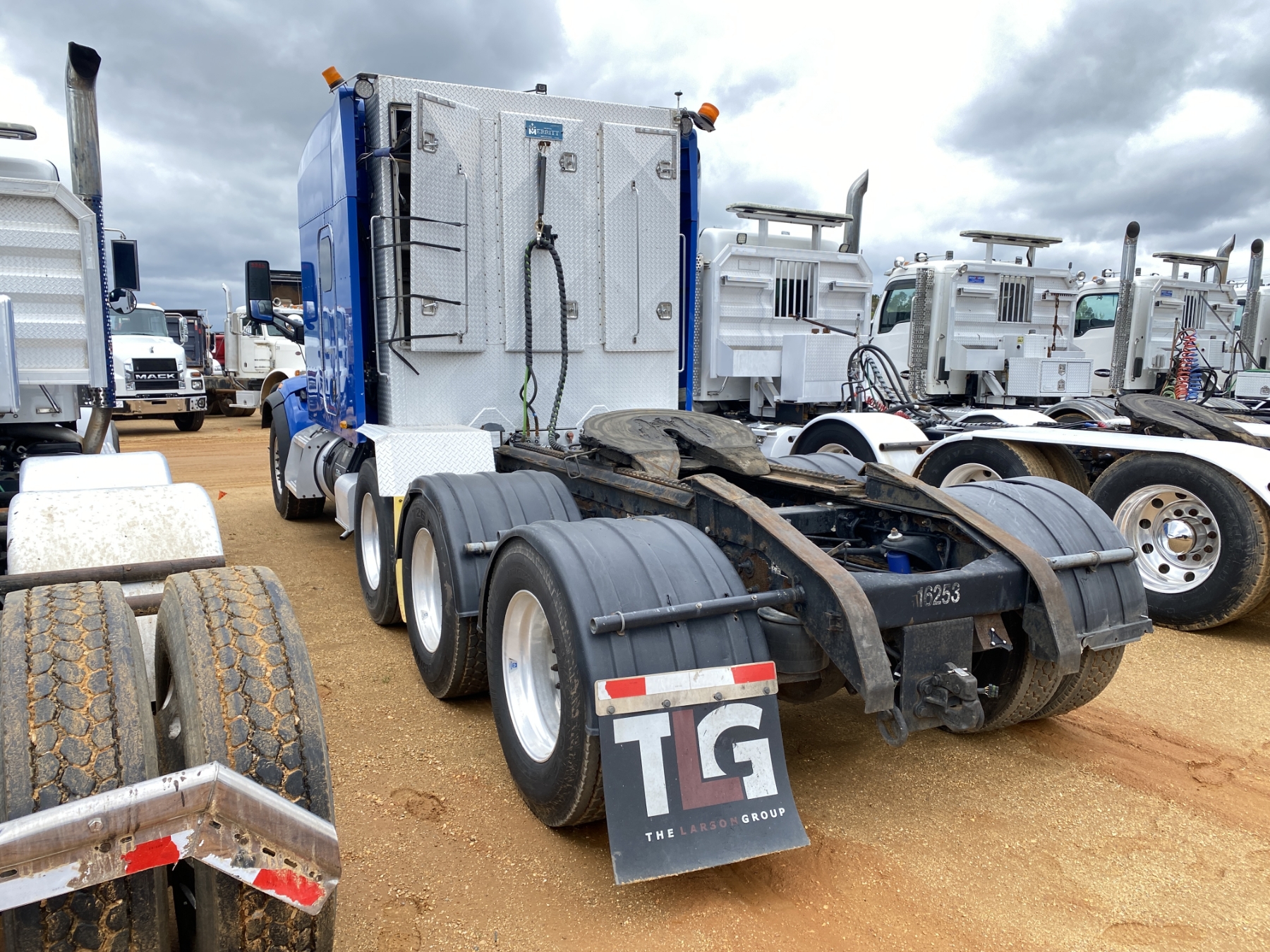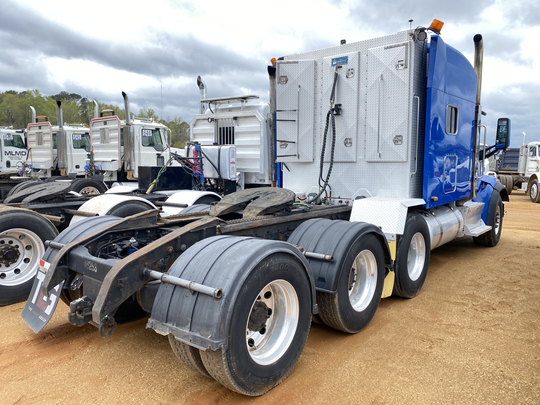 Tri Axle, 500 HP Cummins ISX engine, Eaton 18 speed trans, 46K rears, air ride, 18,740 lb. front, 255" W/B, enclosed alum headache rack, 295/75R22.5 rear tires, 425/65R22.5 front tires, all alum