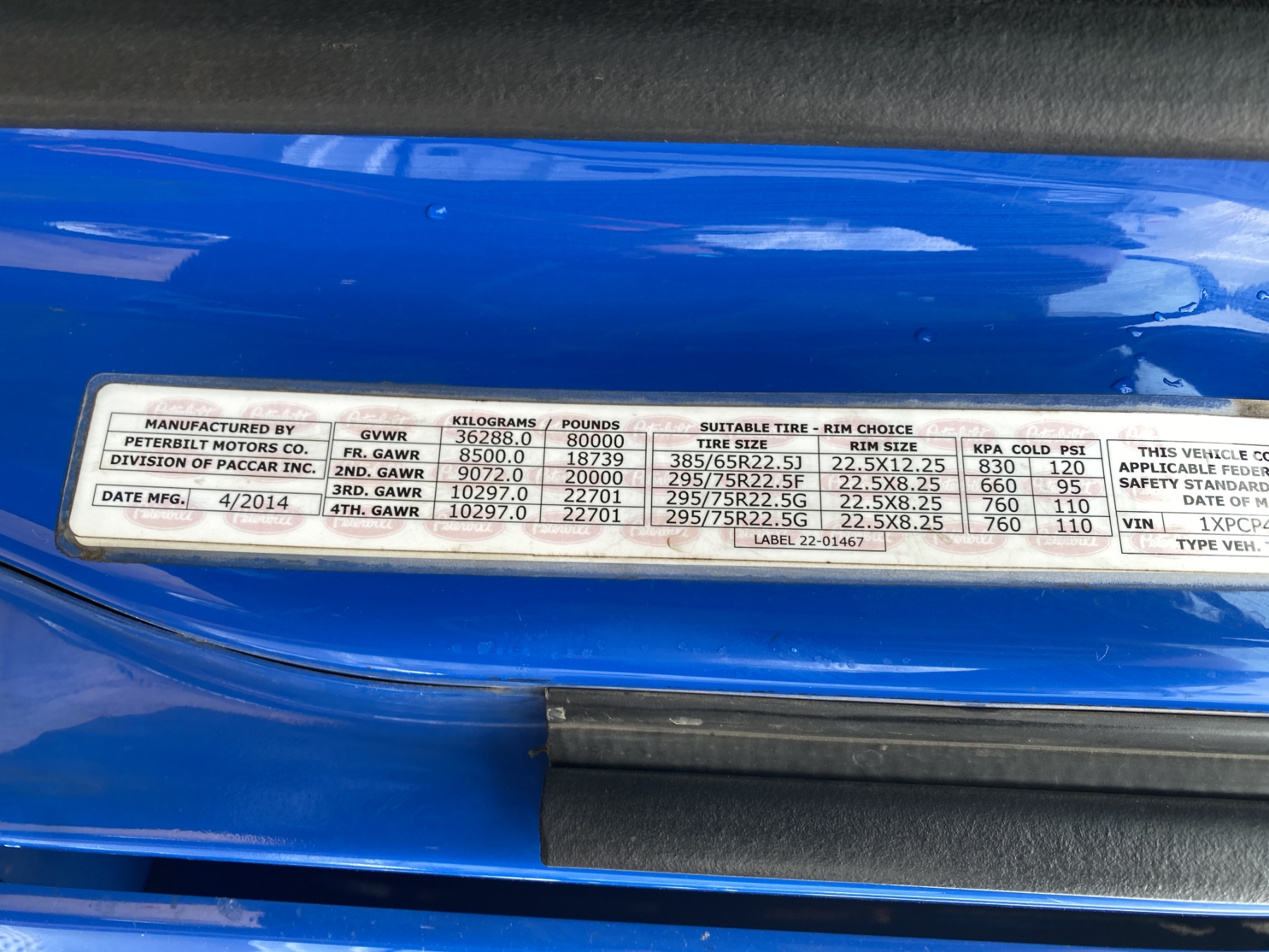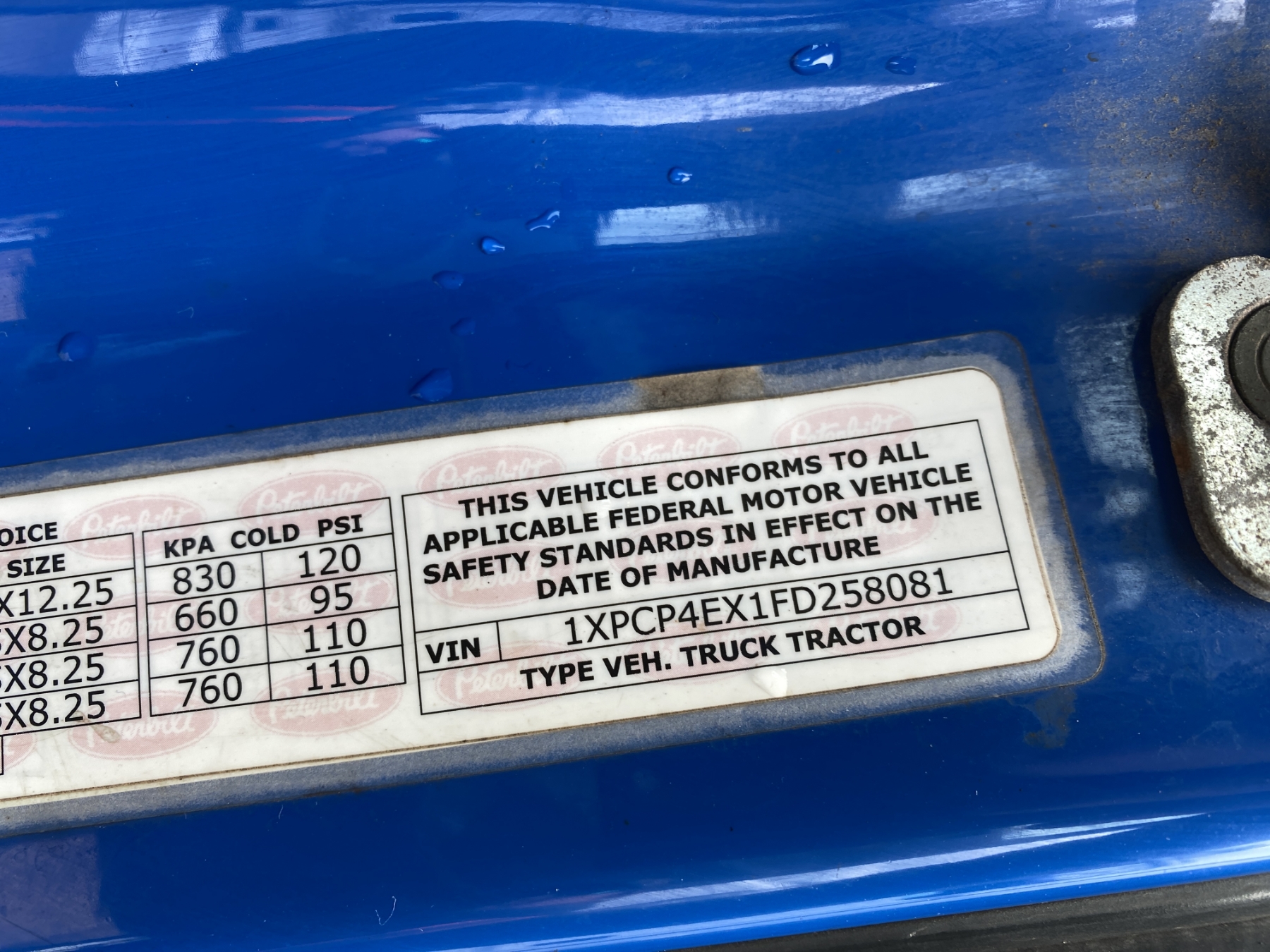 Vehicle ID Number: 1XPCP4EX1FD258081