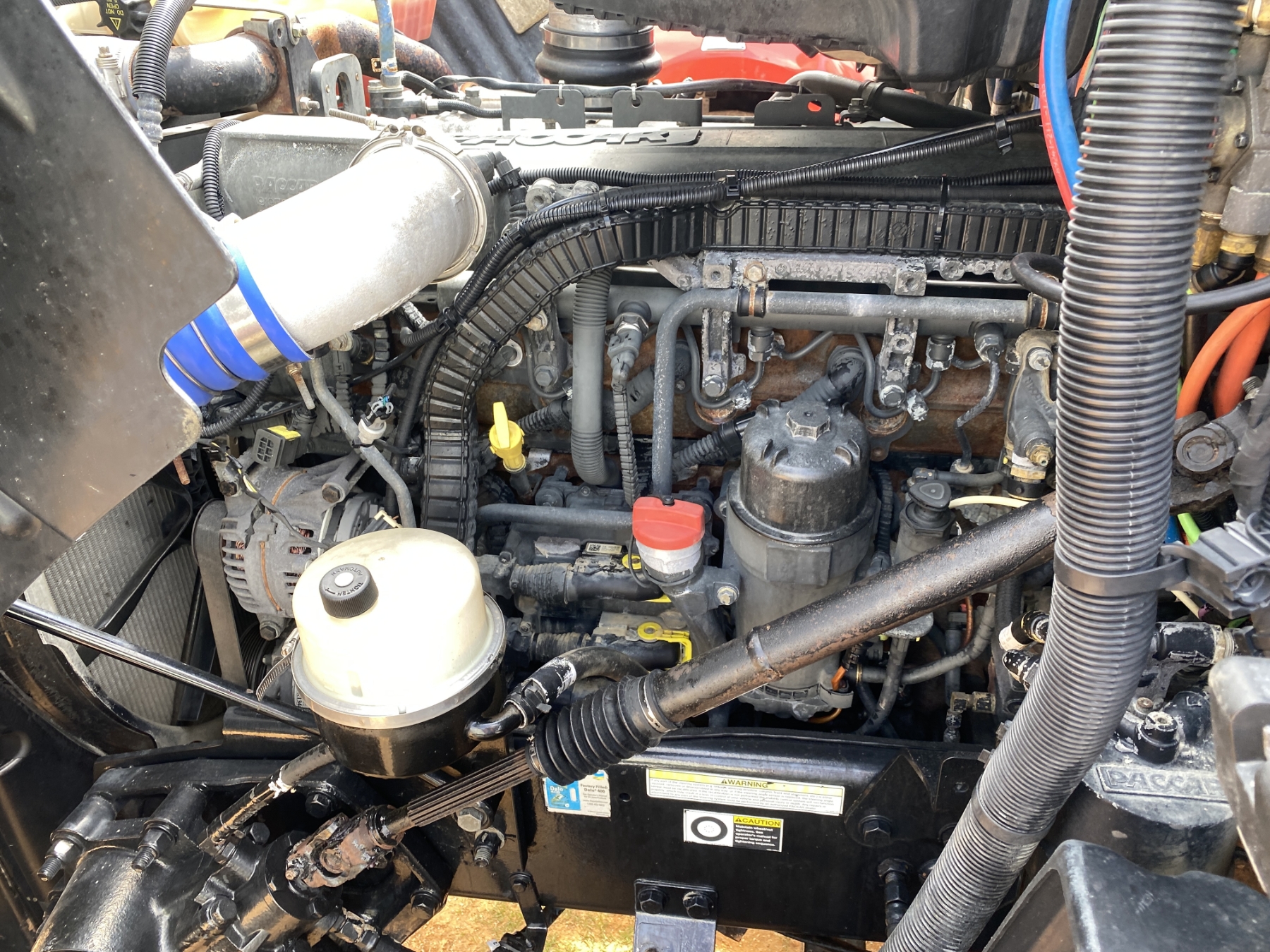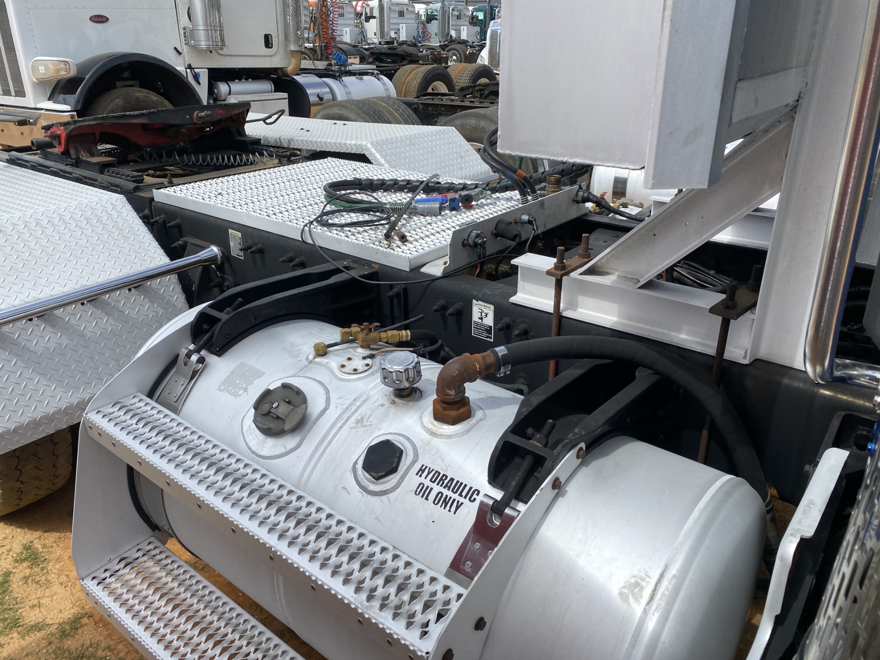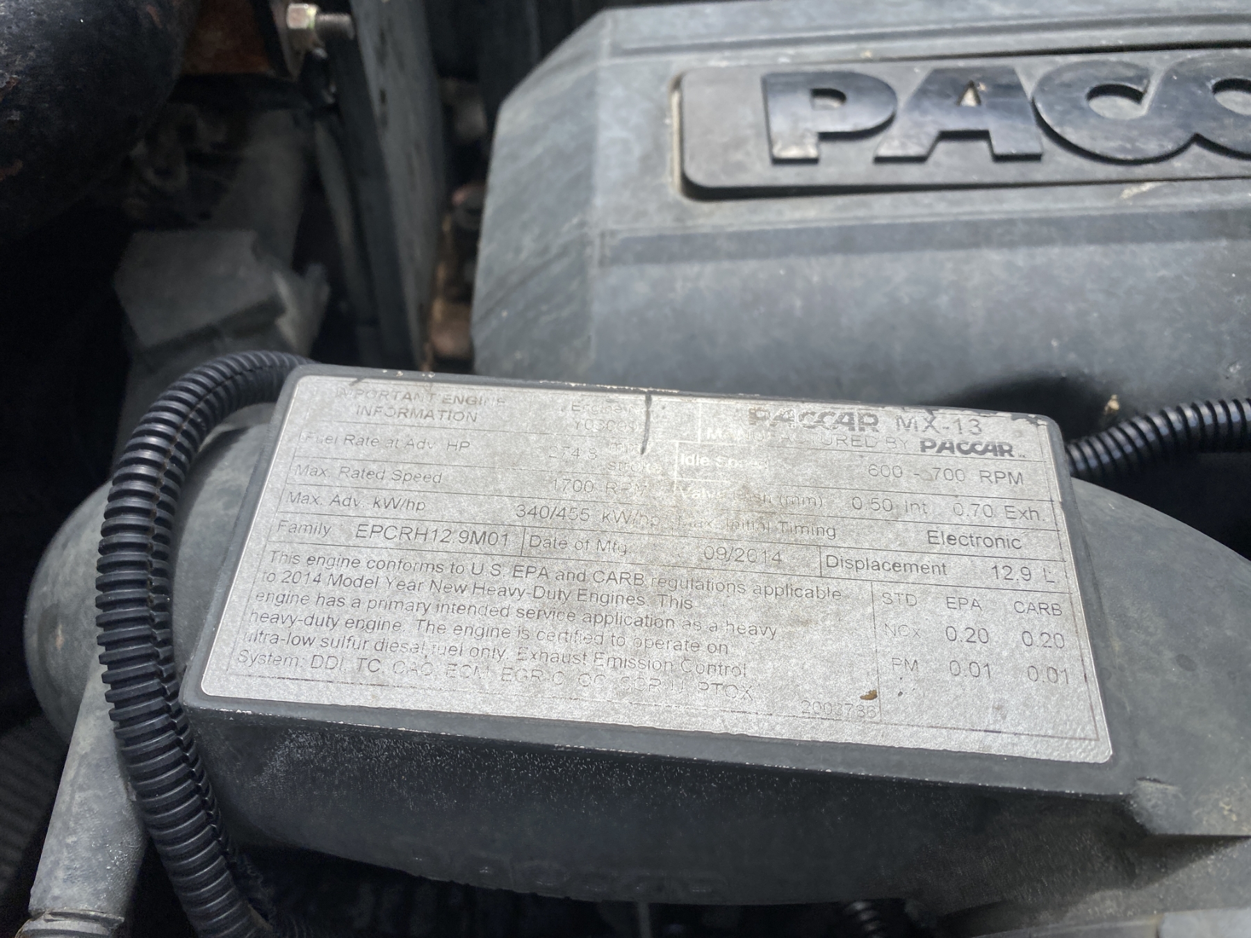 T/A, 455 HP Paccar MX-13 engine, 10 speed trans, 38K rears, air ride, 12K front, 196" W/B, wet kit, alum headache rack, 11R22.5 tires, all alum (REBUILT TITLE)