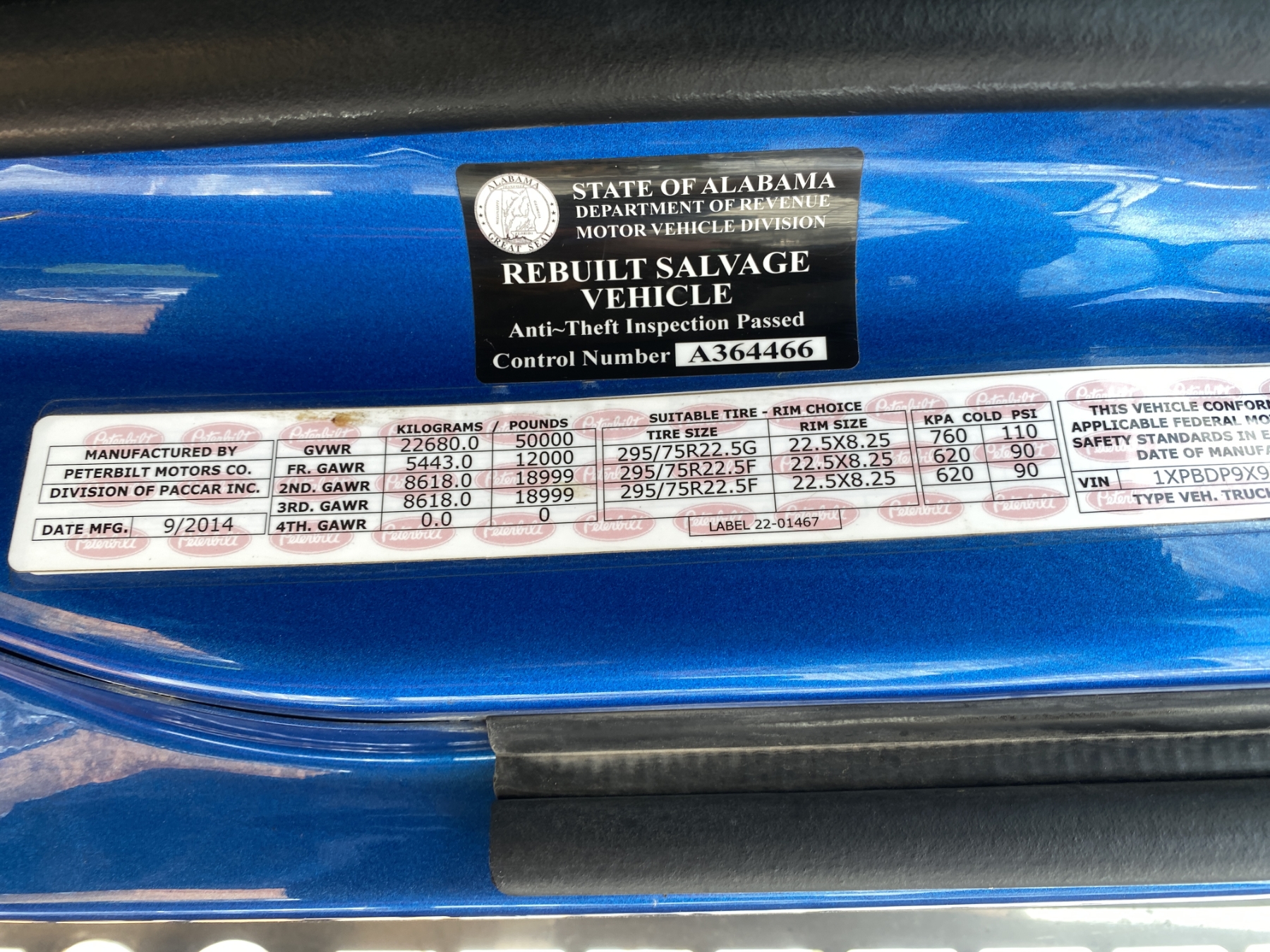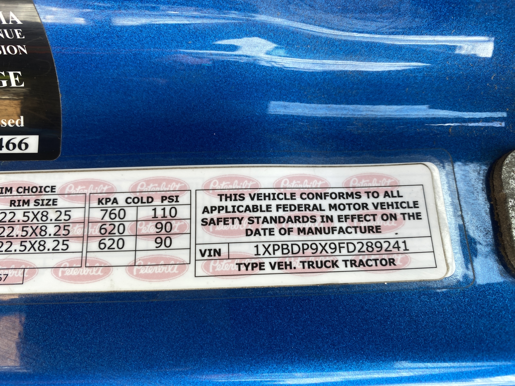 Vehicle ID Number: 1XPBDP9X9FD289241