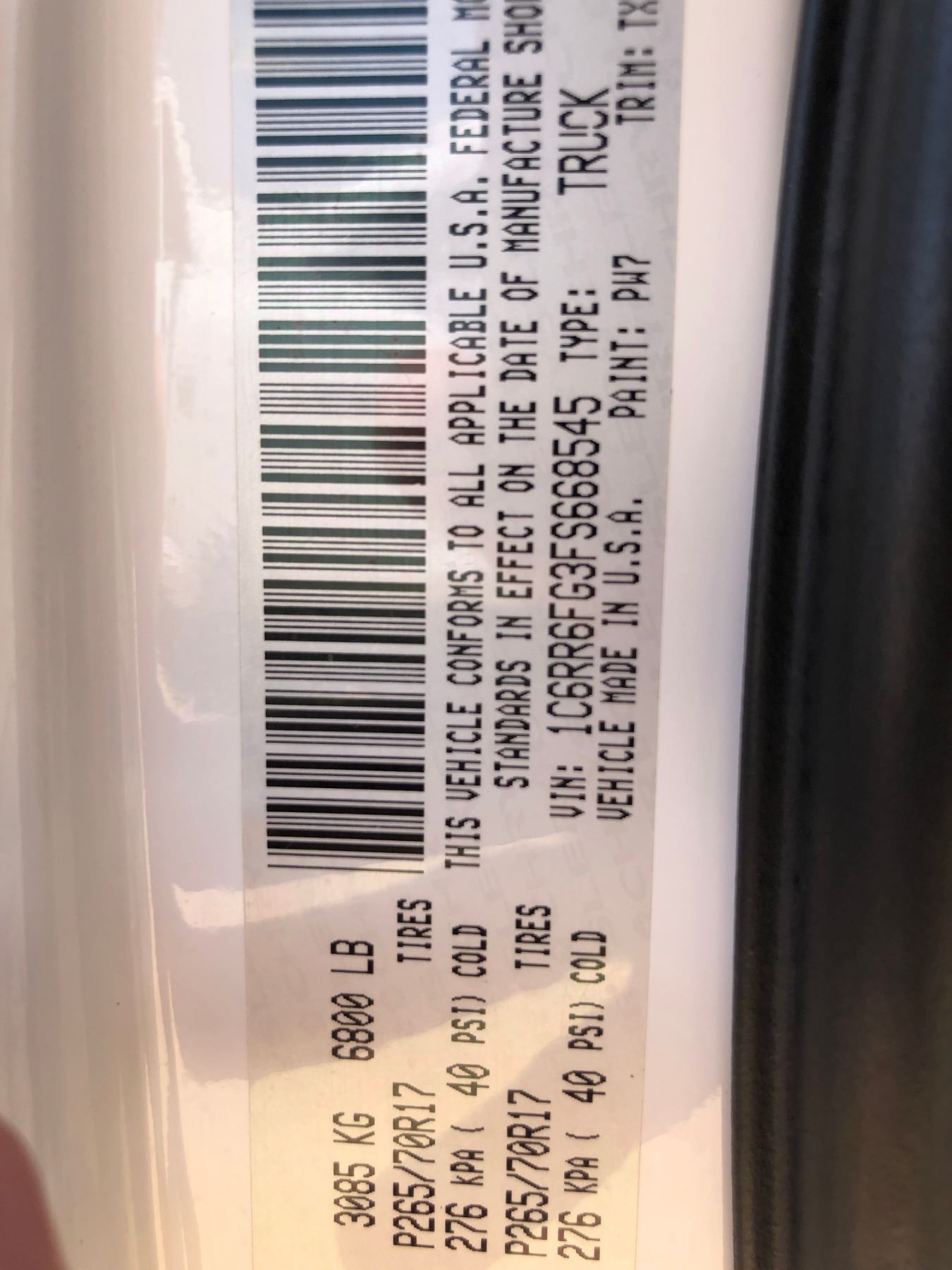 2015 RAM 1500 PICKUP TRUCK, VIN/SN:1C6RR6FG3FS668545 - CREW CAB, V8 GAS ENGINE, A/T, ODOMETER READIN