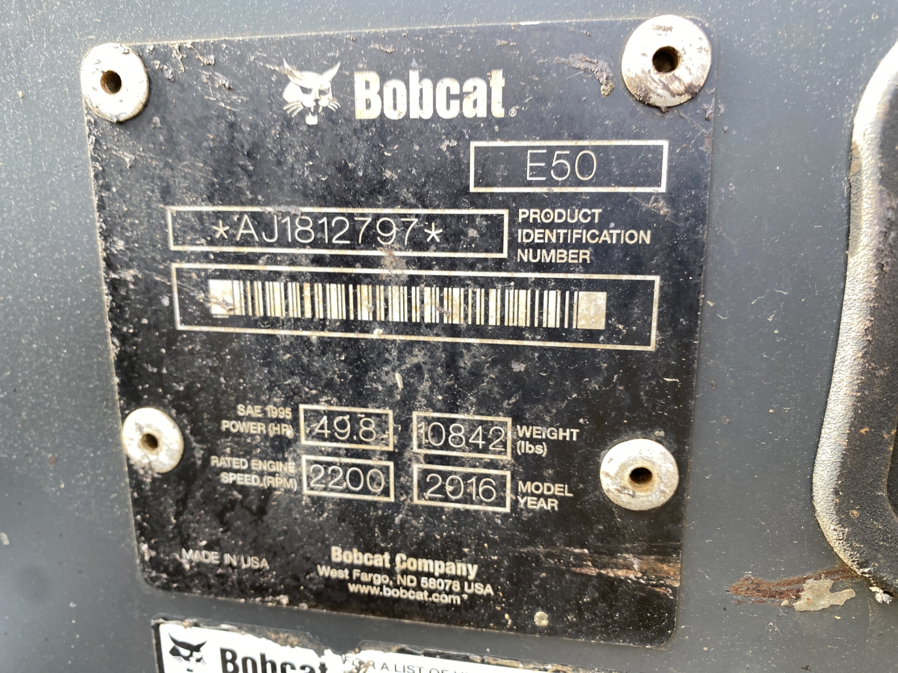 2016 BOBCAT E50 Excavator - Mini