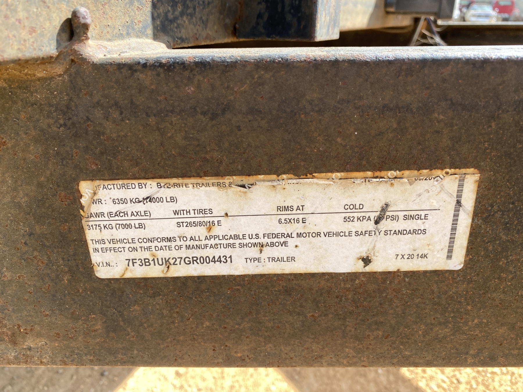 Vehicle ID Number: 7F3B1UK27GR004431