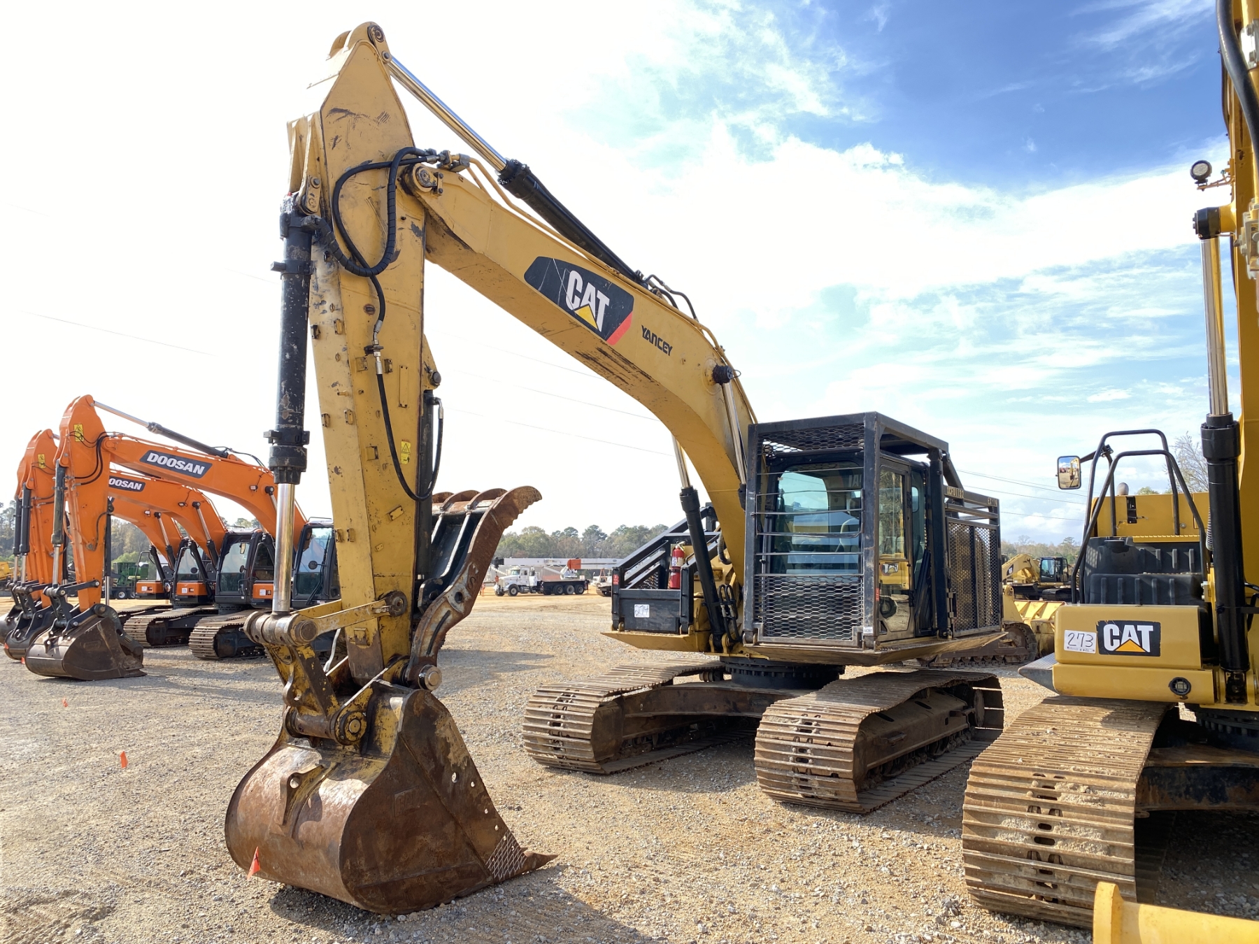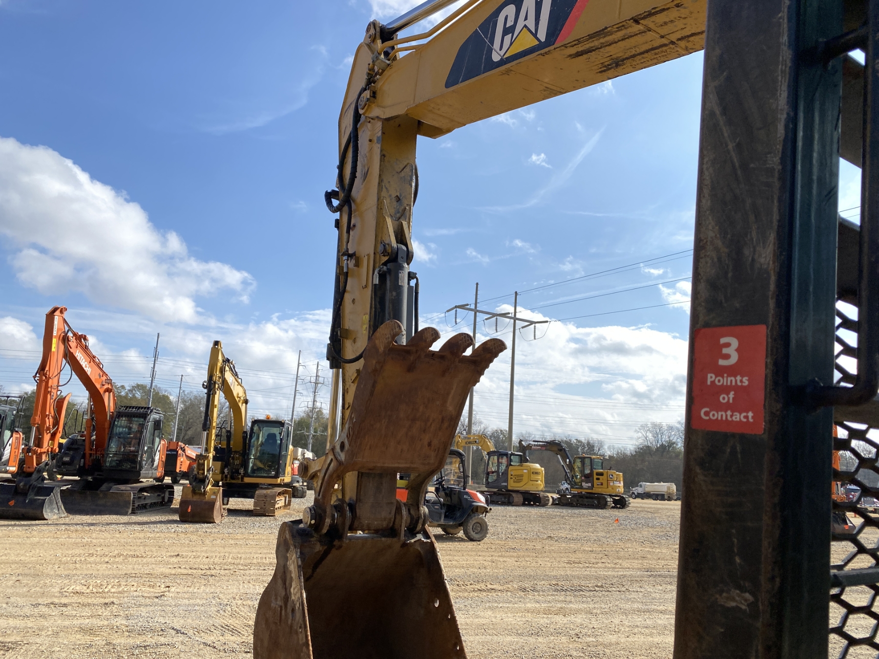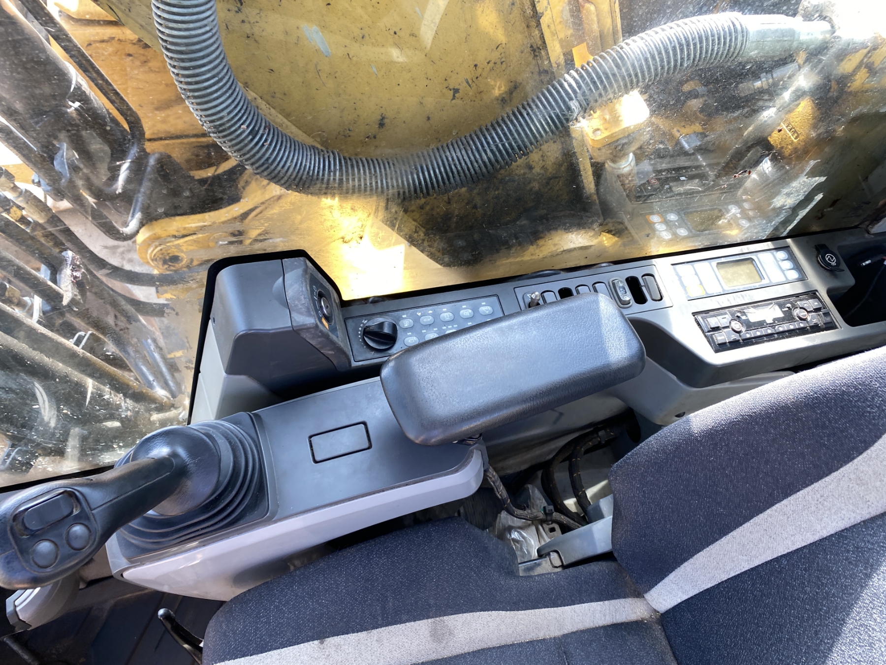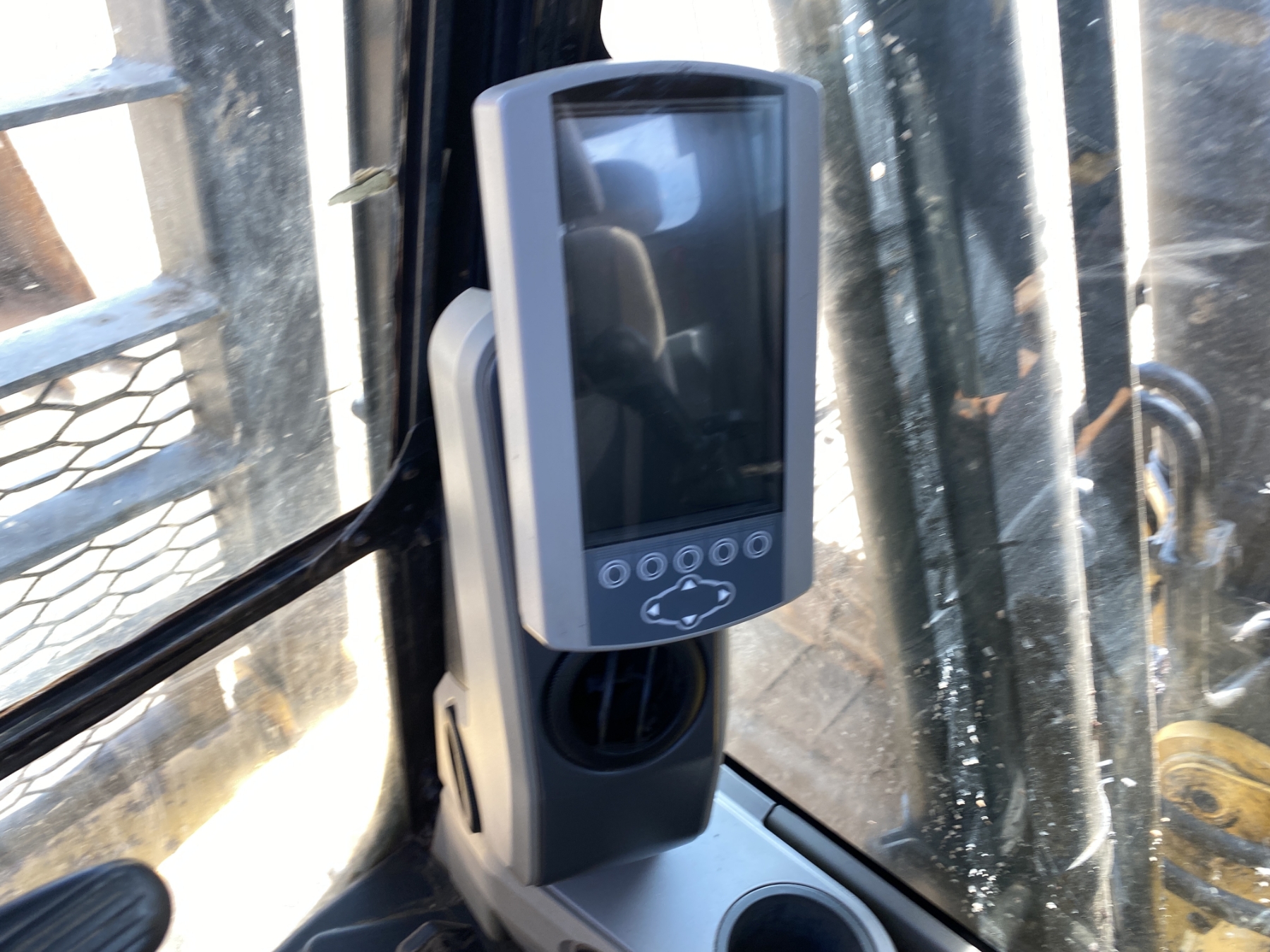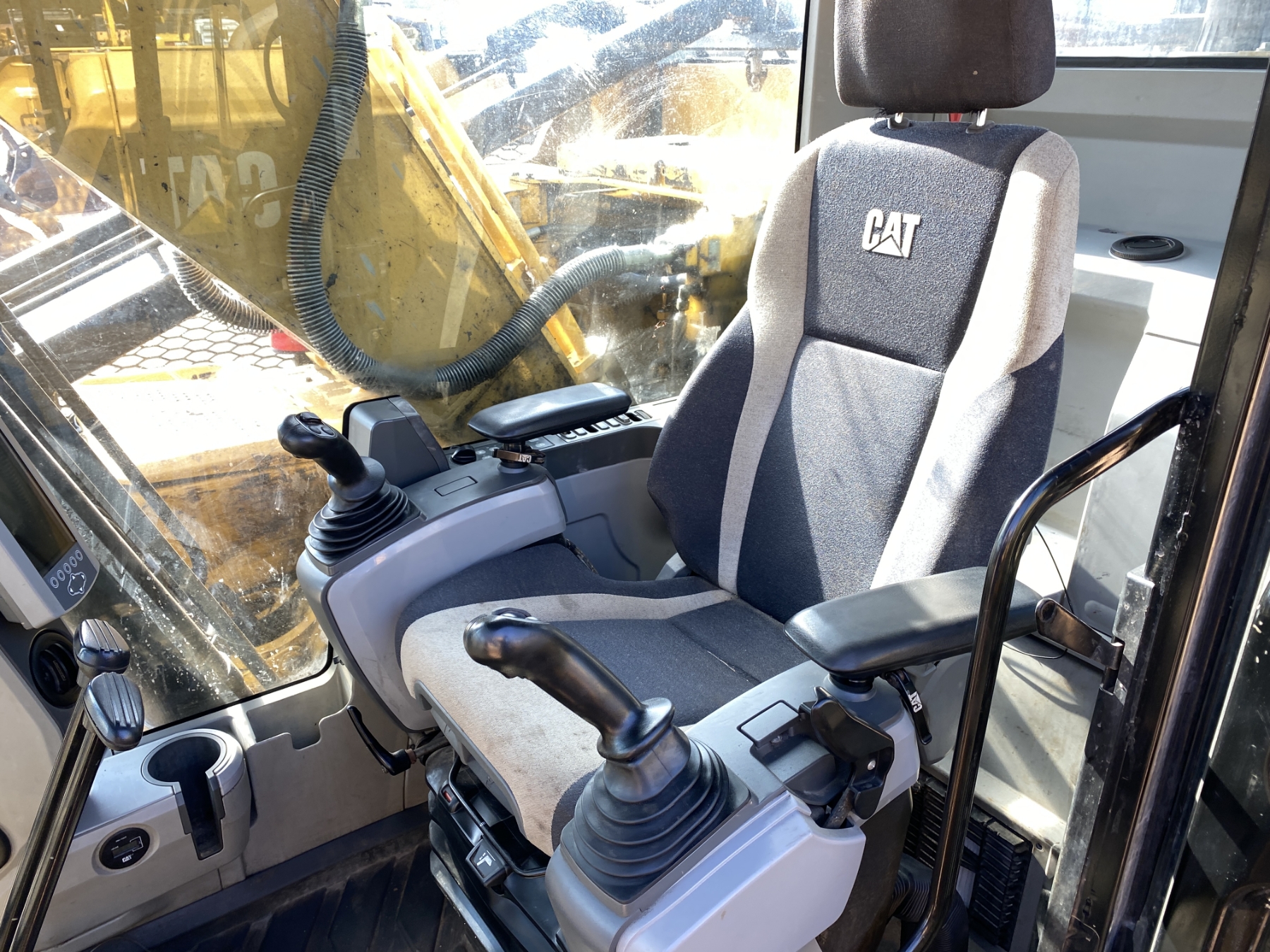 9' 9" stick, 48" bucket, hyd thumb, aux hyd, cab, A/C, screens