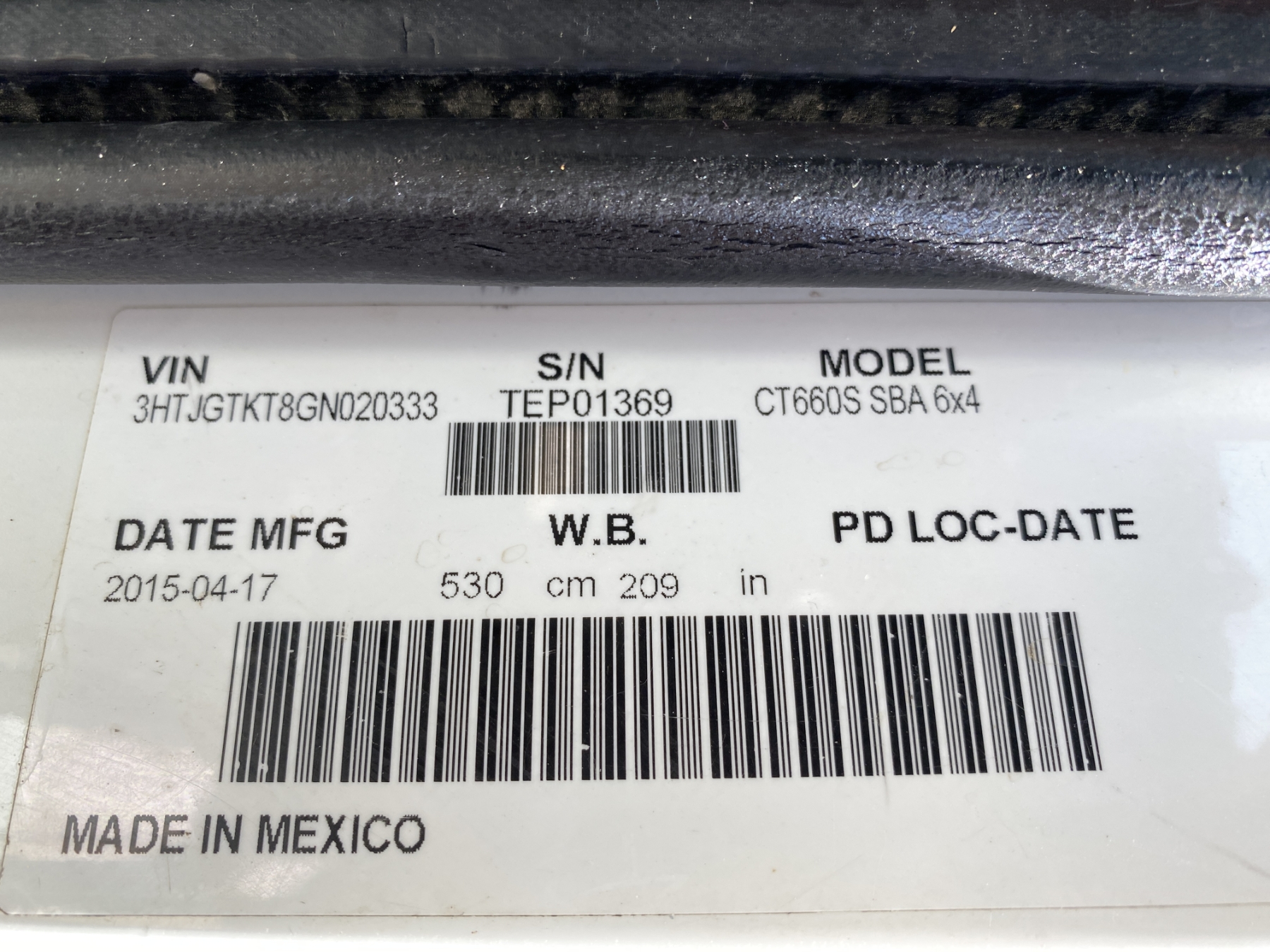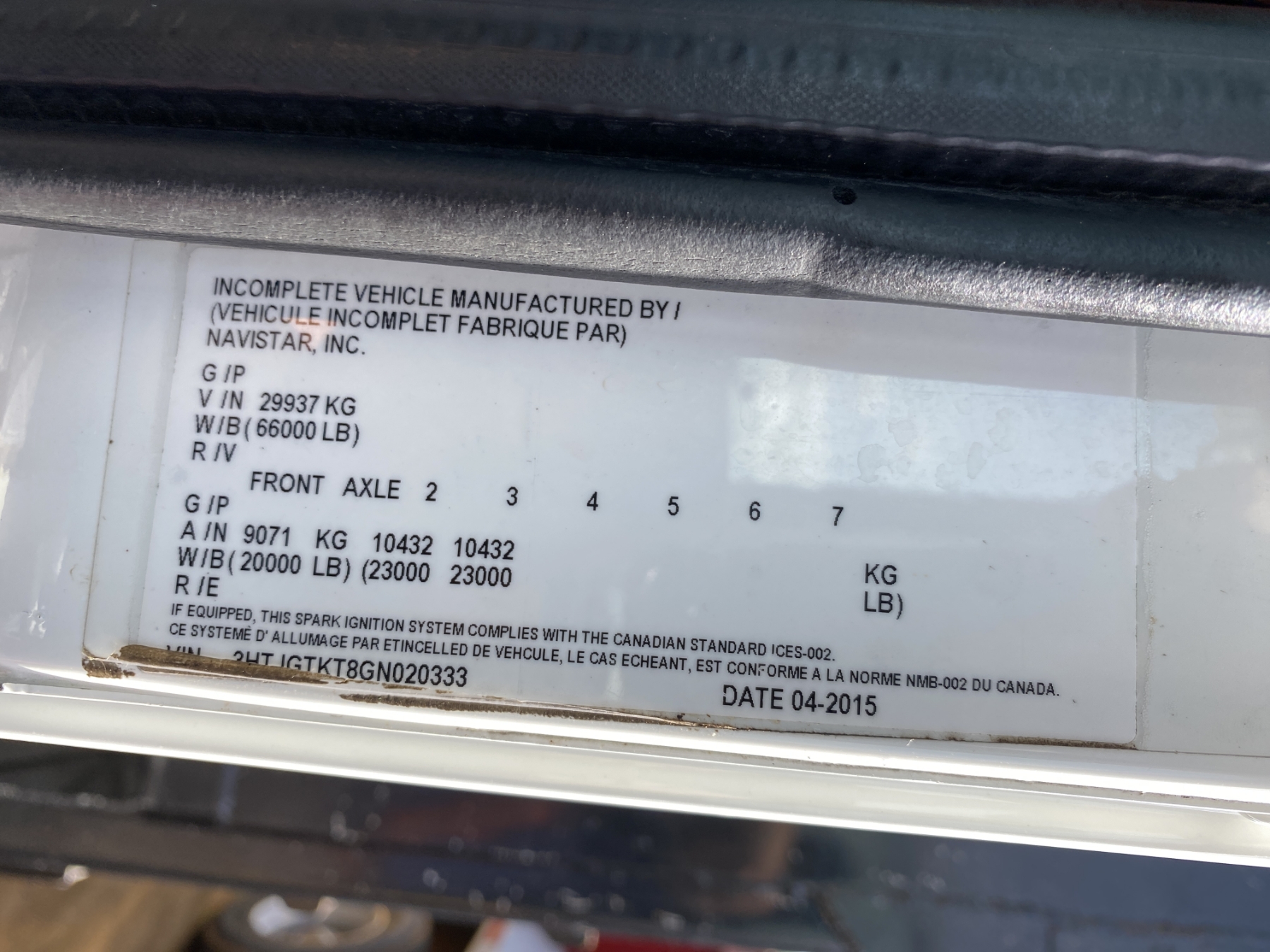 Vehicle ID Number: 3HTJGTKT8GN020333