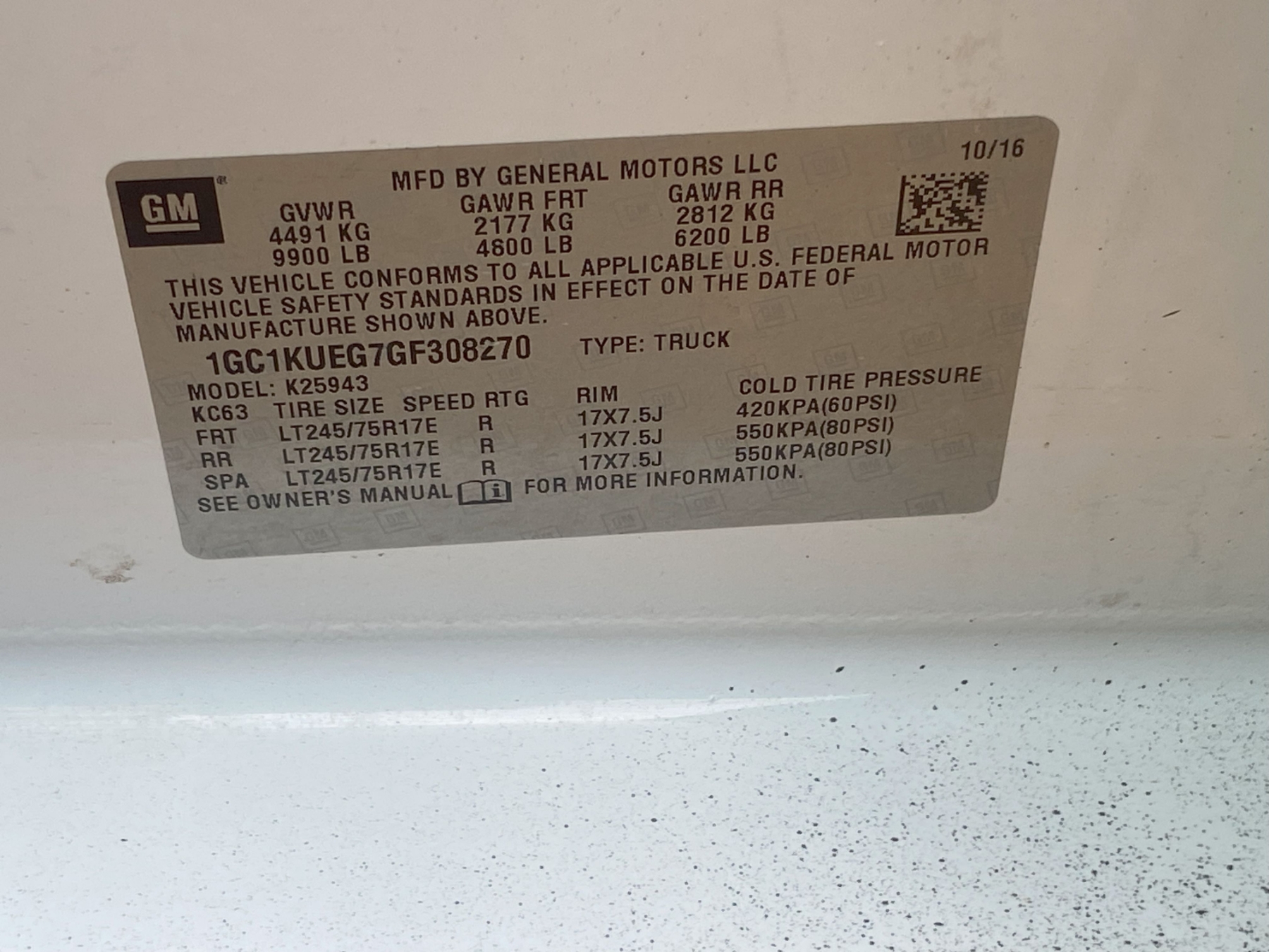 Vehicle ID Number: 1GC1KUEG7GF308270