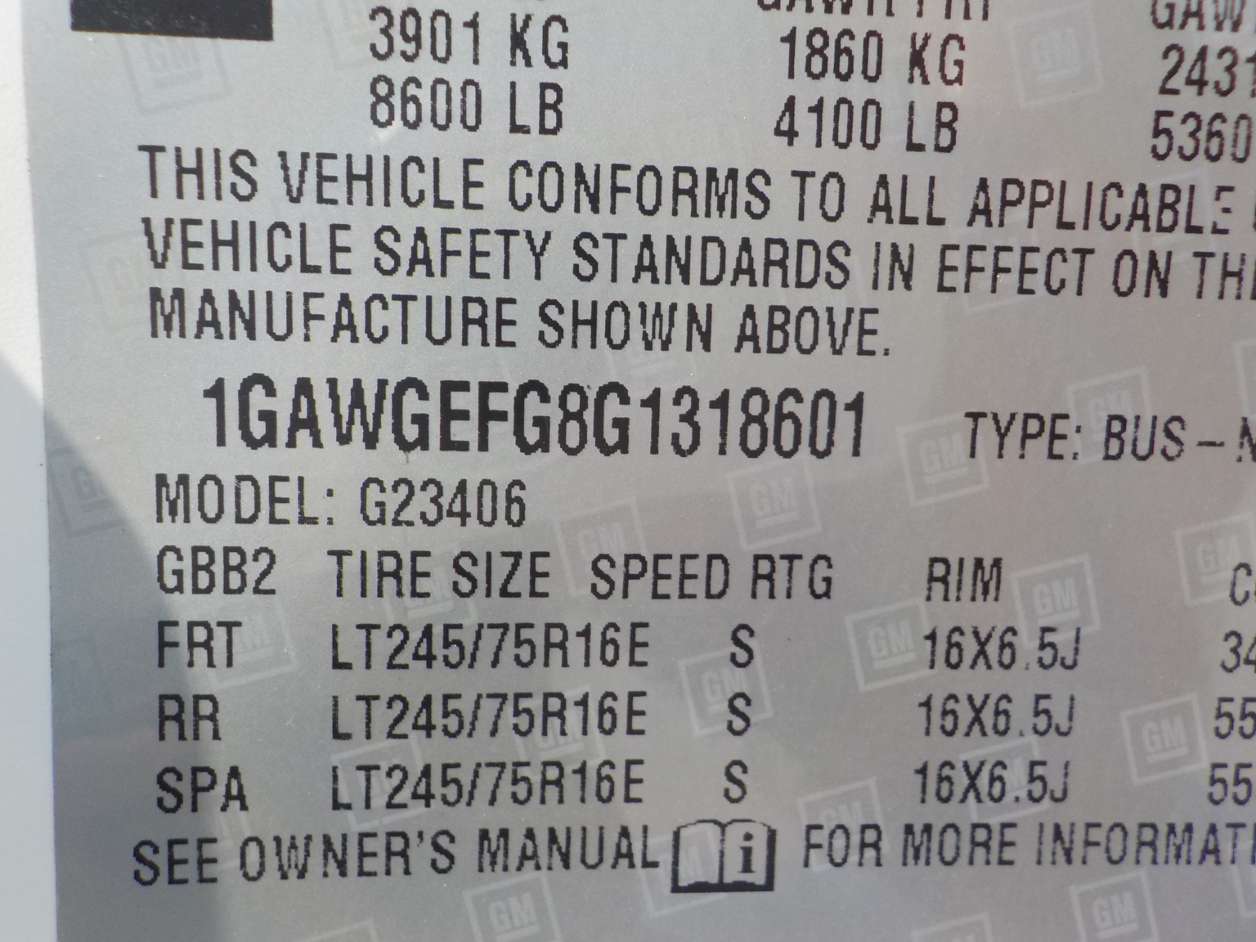 Vehicle ID Number: 1GAWGEFG8G1318601