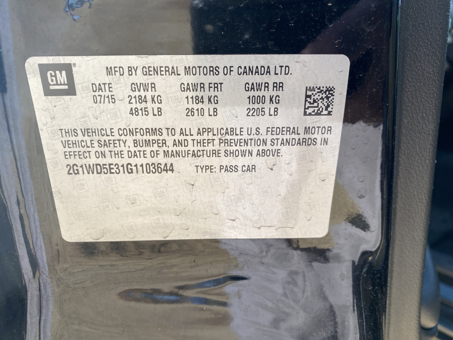 Vehicle ID Number: 2G1WD5E31G1103644