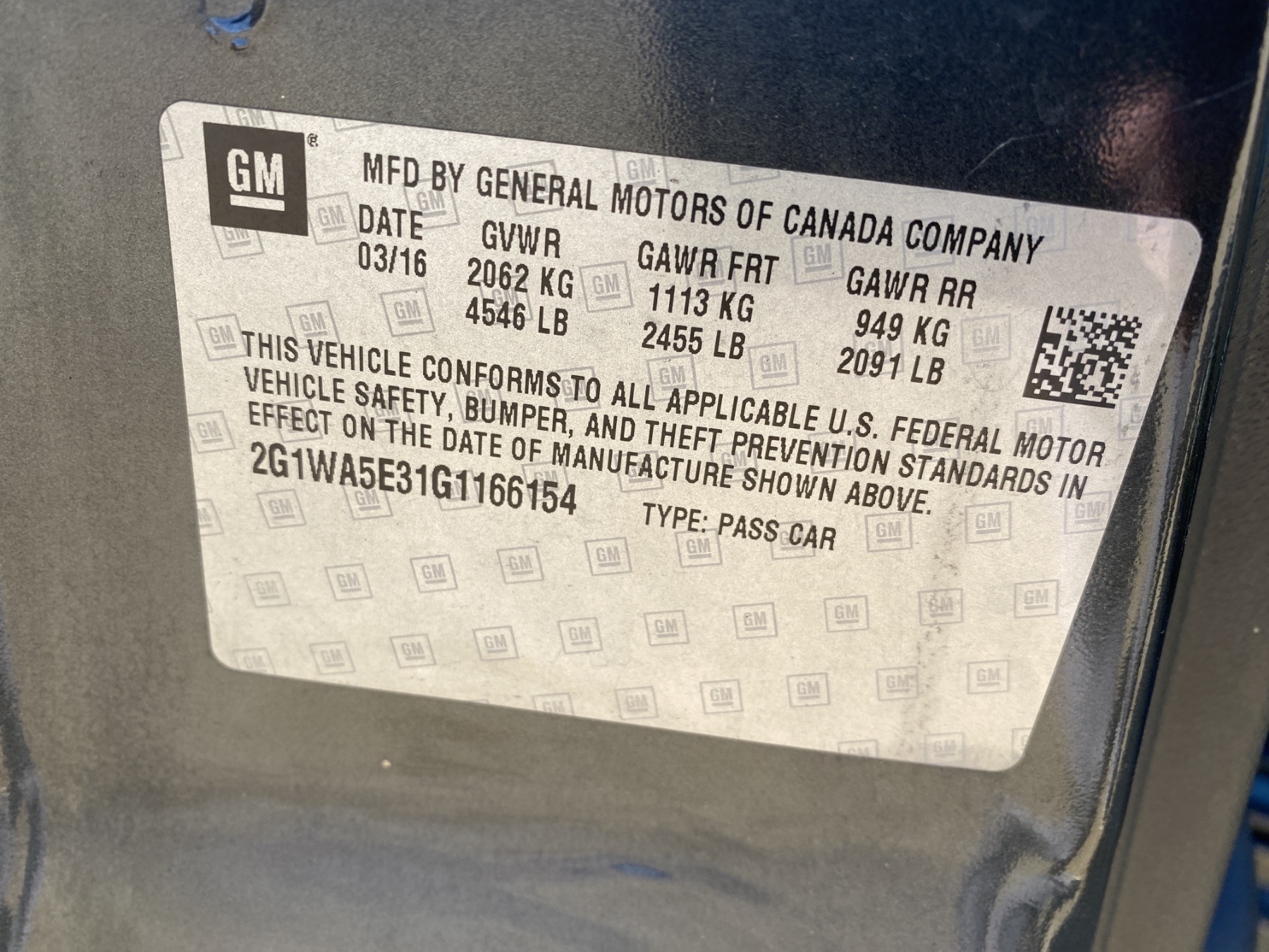 Vehicle ID Number: 2G1WA5E31G1166154