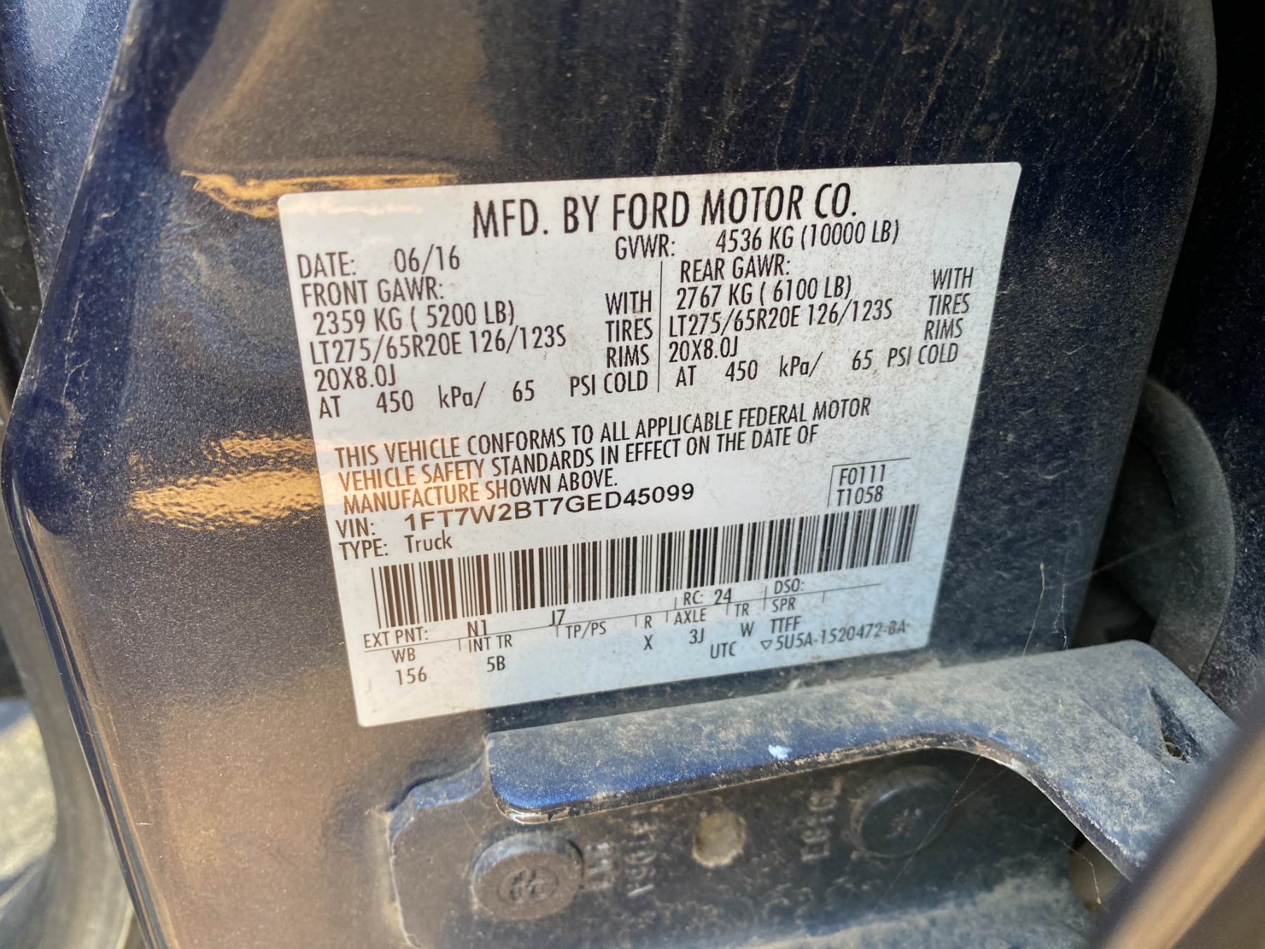 Vehicle ID Number: 1FT7W2BT7GED45099