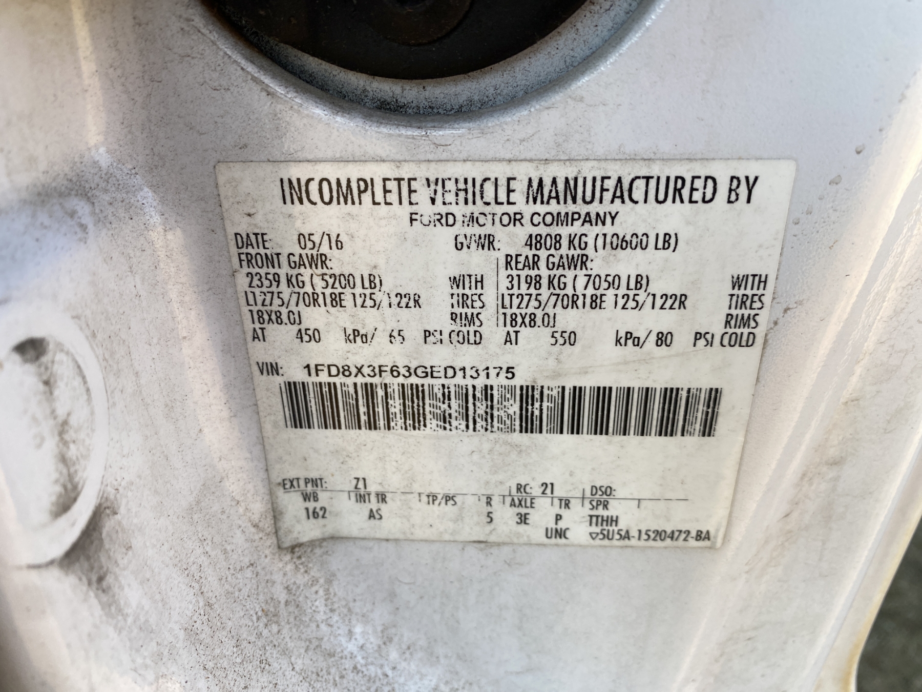 Vehicle ID Number: 1FD8X3F63GED13175