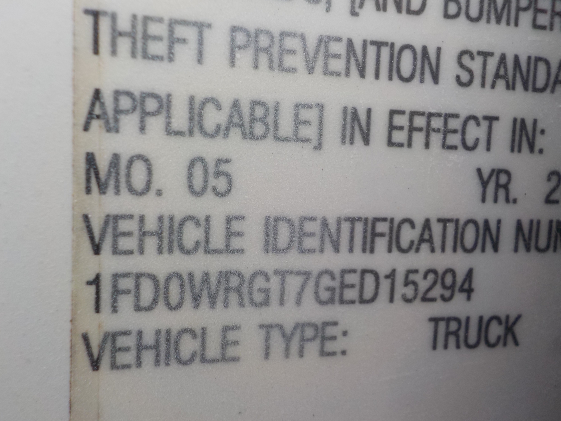 Vehicle ID Number: 1FD0W4GT7GED15294