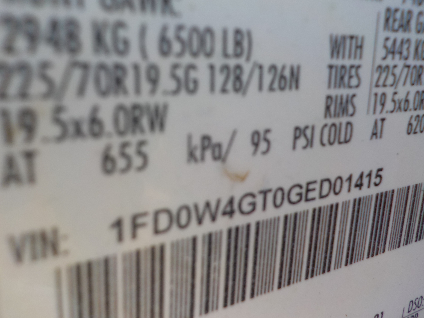 Vehicle ID Number: 1FD0W4GT0GED01415