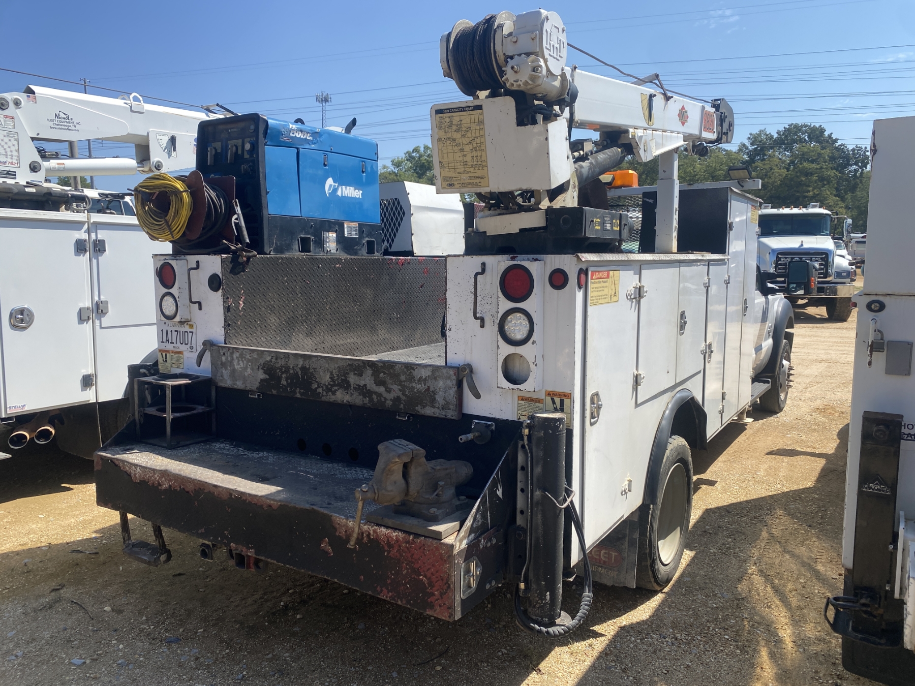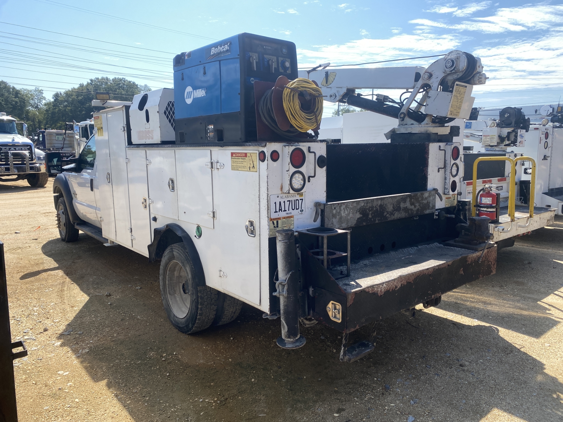 ext cab, 6.7L Power Stroke engine, A/T, IMT service body, Boss hyd air compressor, Miller Bobcat 250 welder, IMT 3820 service crane
