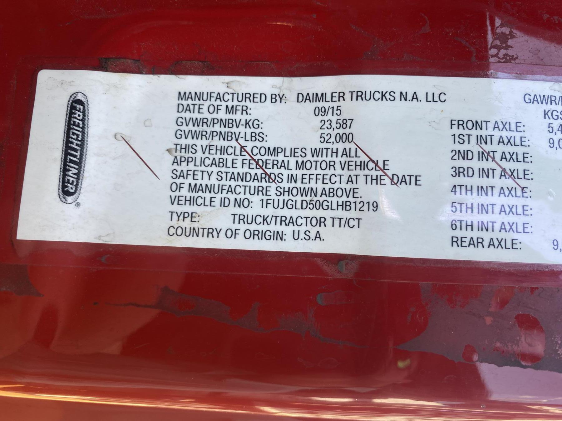 Vehicle ID Number: 1FUJGLD50GLHB1219