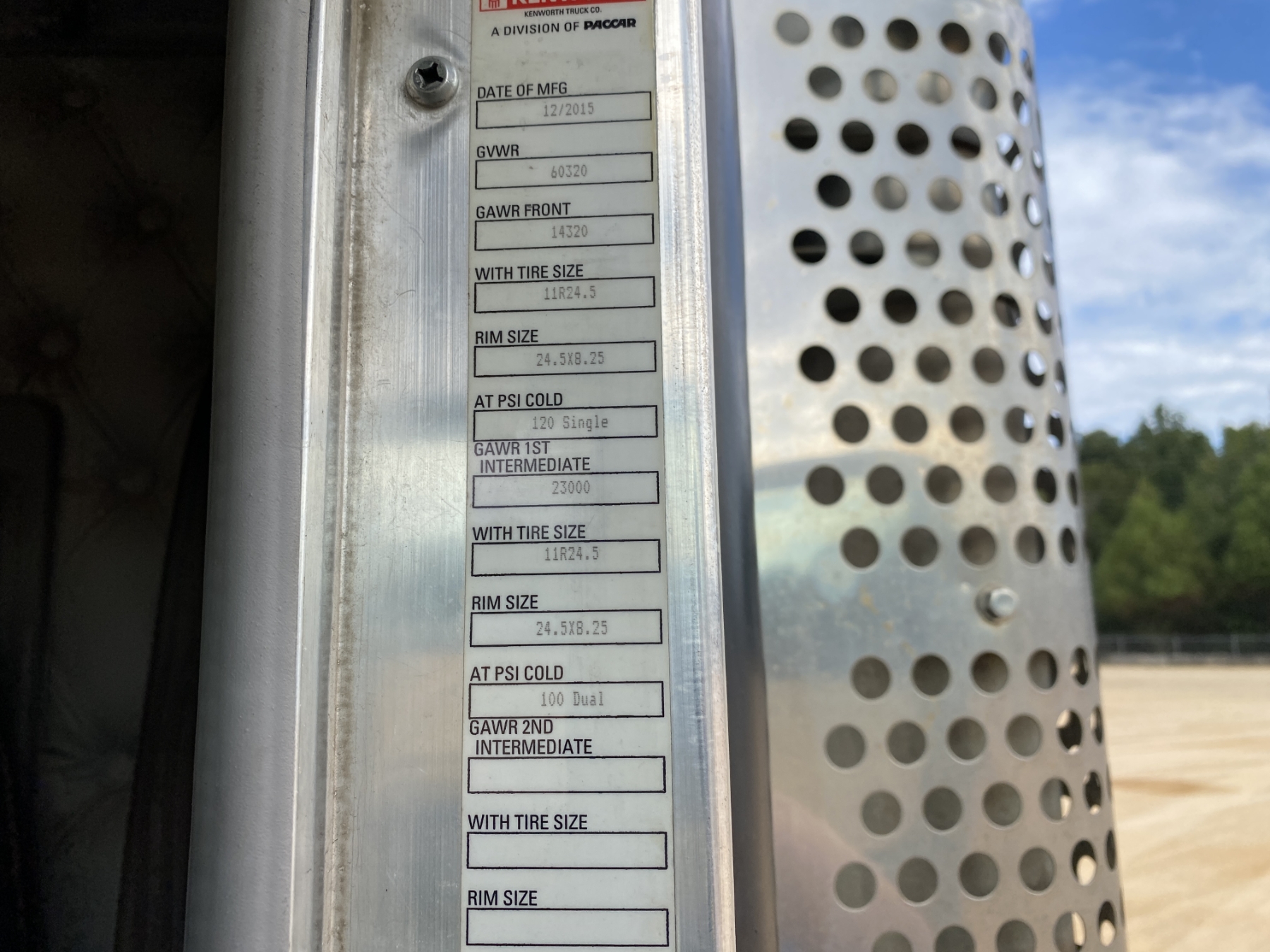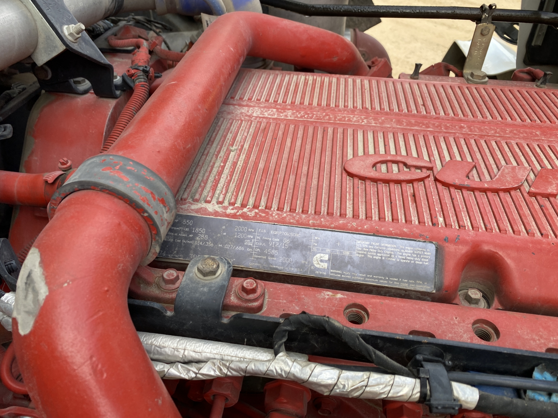 T/A, ext cab, 550 HP Cummins ISX15 engine, 18 speed trans, 46K rears, air ride, 14,320 lb. front, 202" W/B, alum headache rack, 11R24.5 tires, all alum