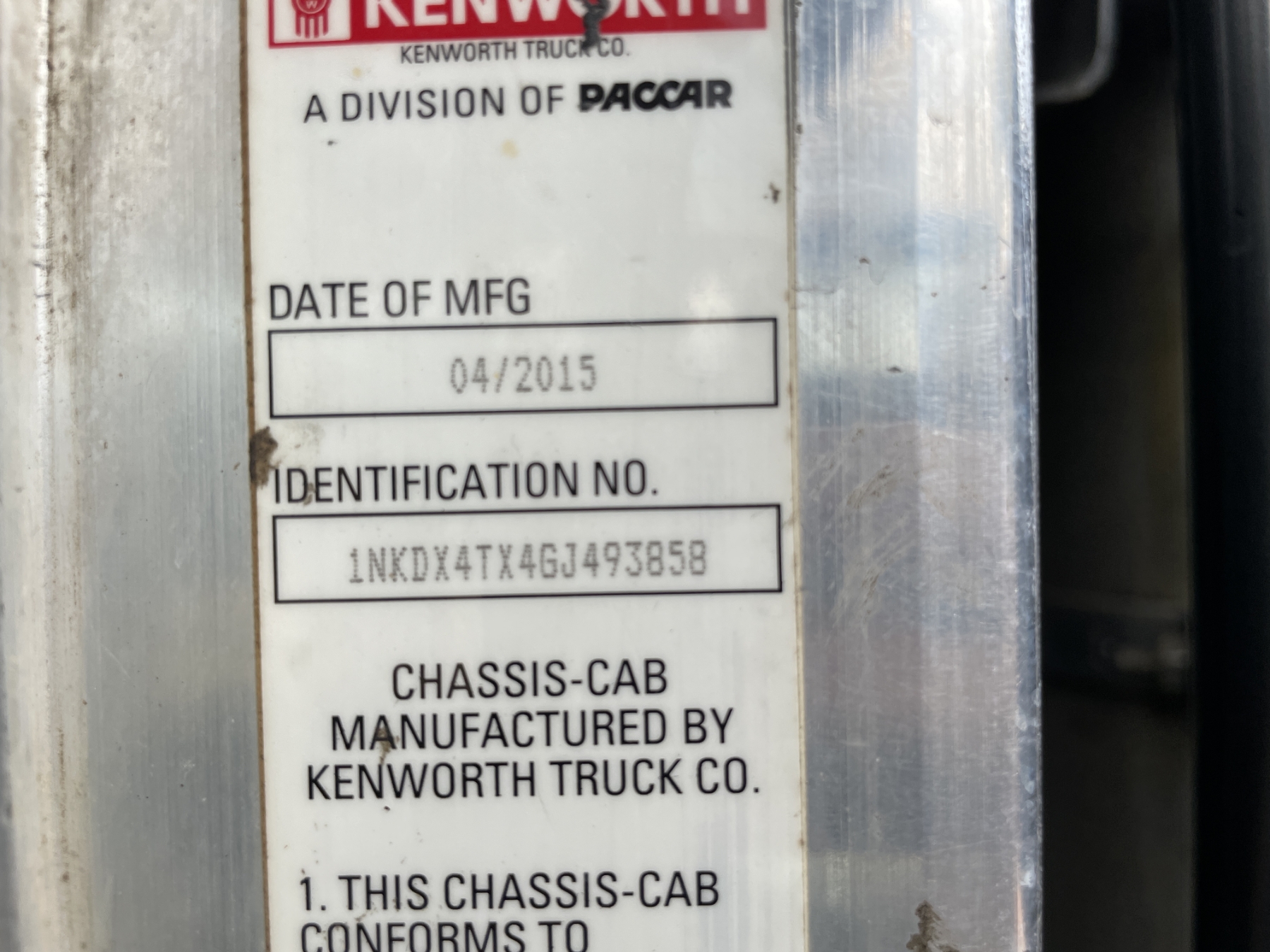 Vehicle ID Number: 1NKDX4TX4GJ493858