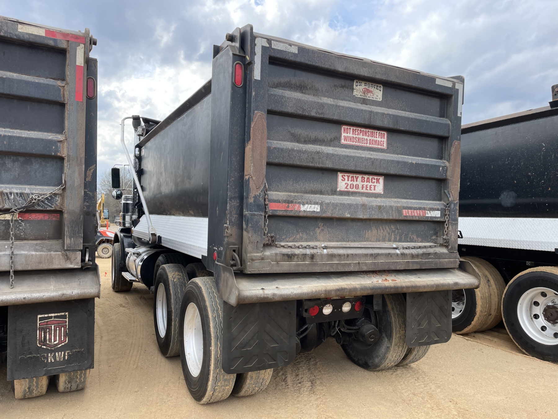 Tri Axle, ext. cab, 450 HP Cummins ISX15 engine, Eaton 8LL trans, 46K rears, 20K front, 16' Hard Ox body, 11R24.5 rear tires, 385/65R22.5 front tires, all alum