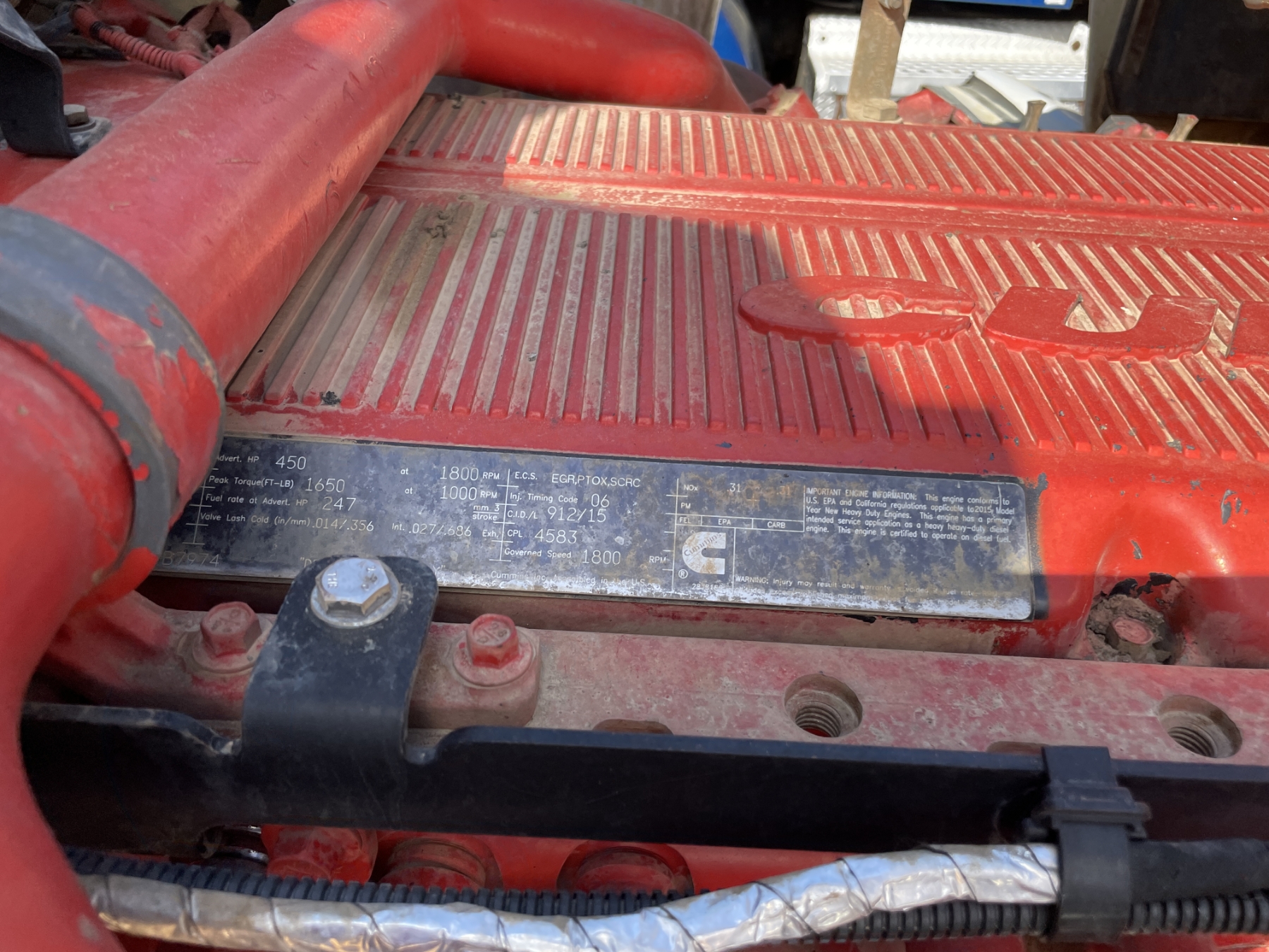 Tri Axle, ext. cab, 450 HP Cummins ISX15 engine, 8LL trans, 46K rears, 20K front, 16' Hard Ox body, 11R24.5 rear tires, 425/65R22.5 front tires