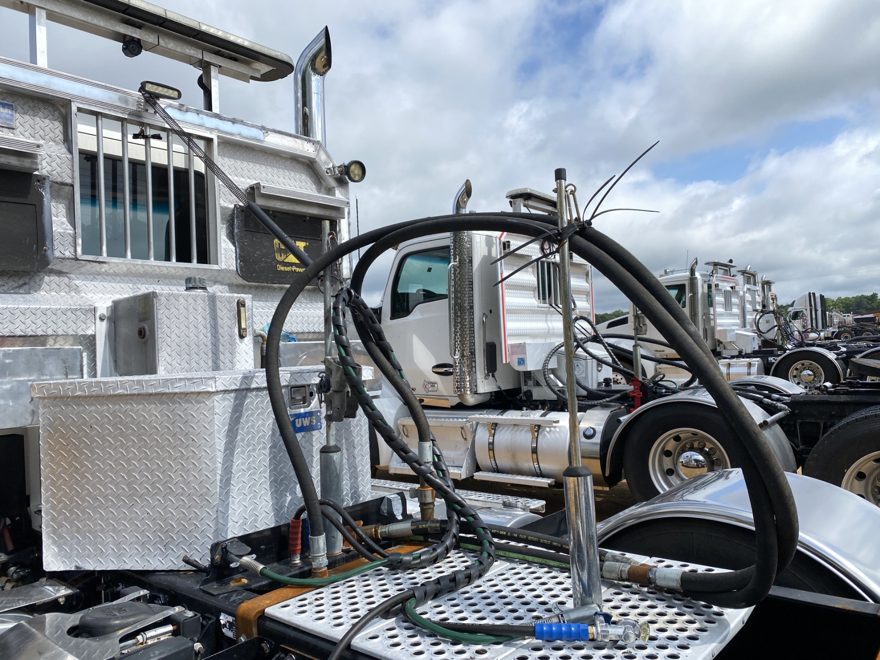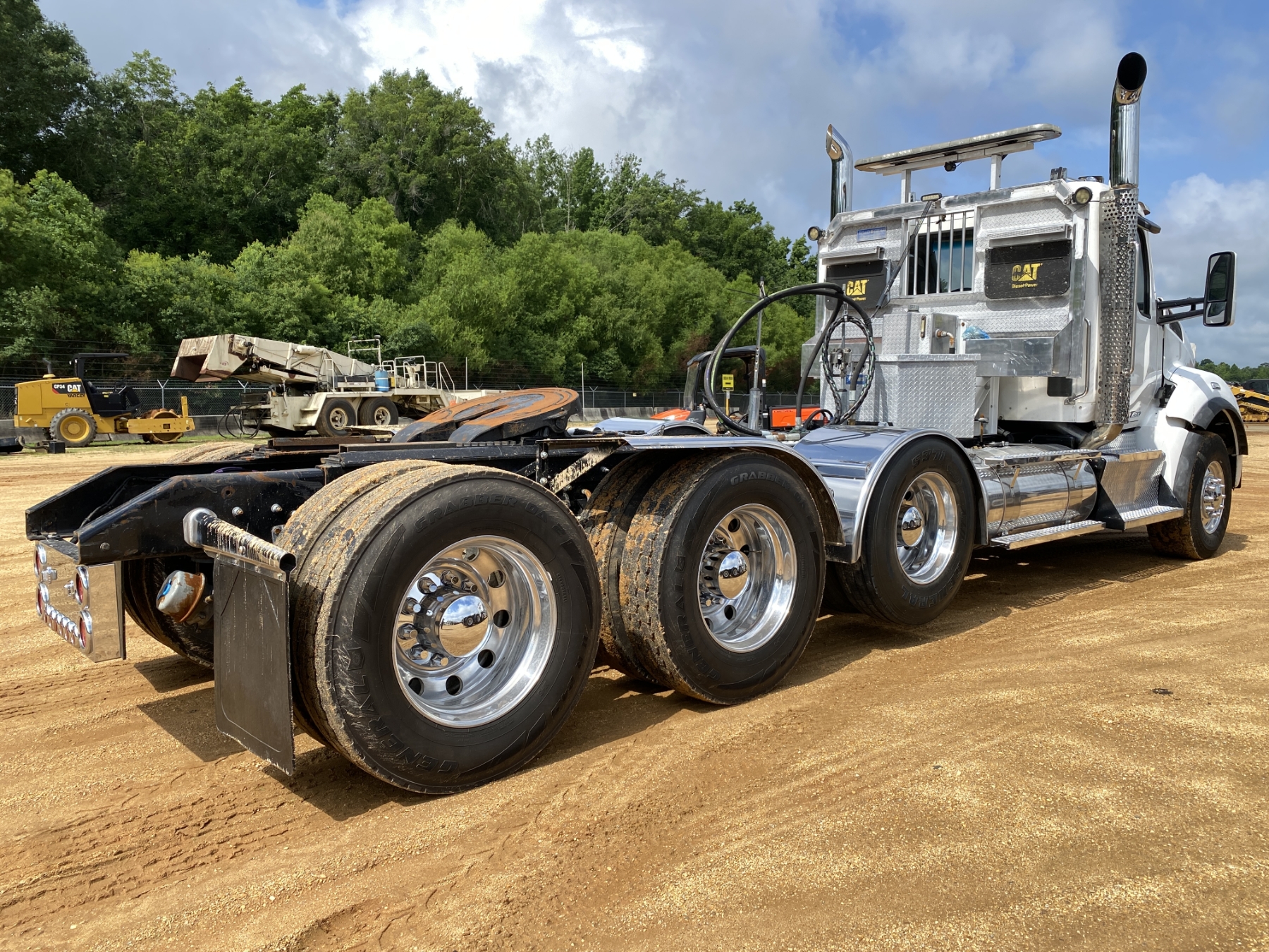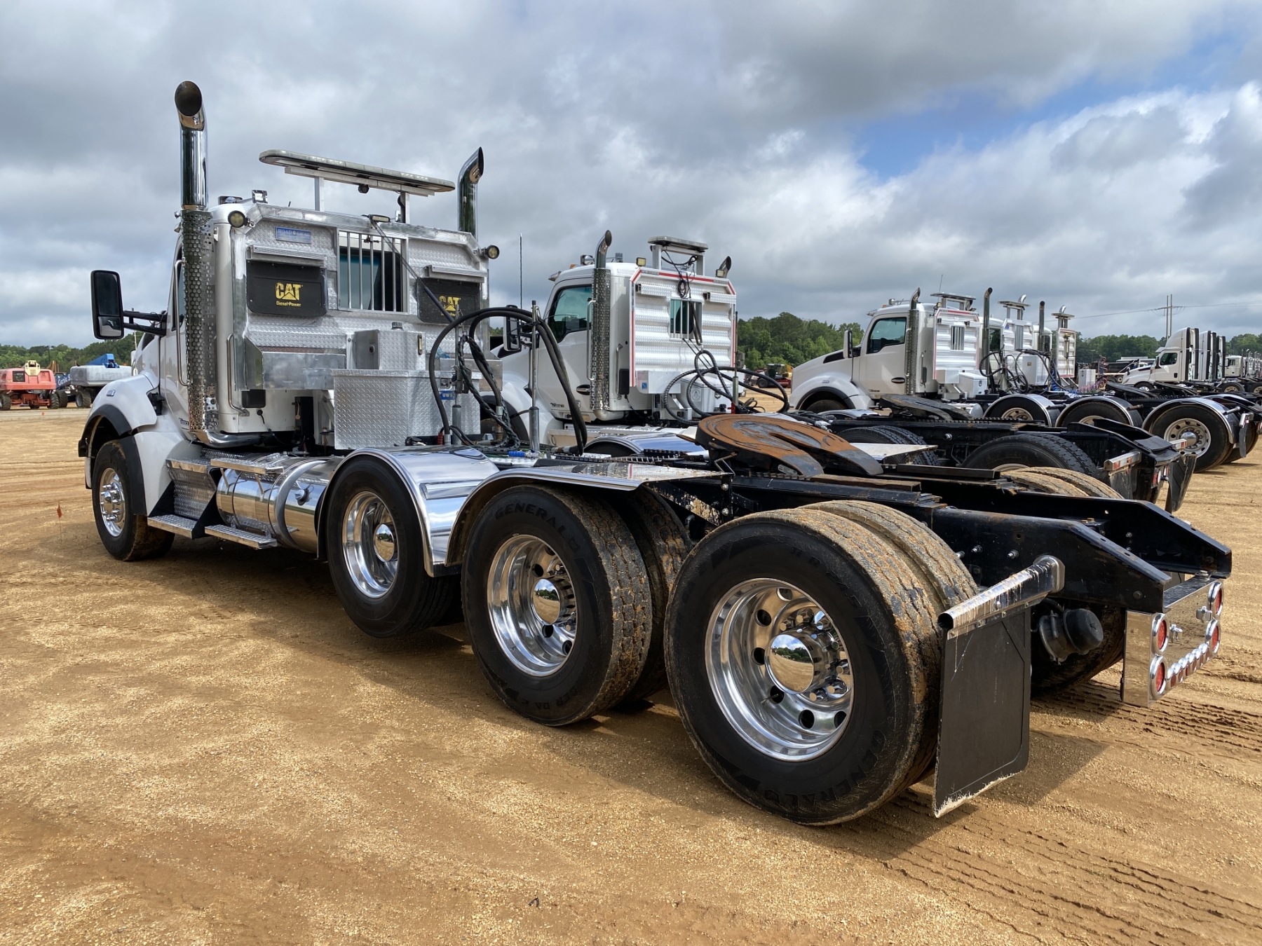 Glider, Tri Axle, Cat C15 engine, 18 speed trans, 46K rears, air ride, 18K front, 252" W/B, wet kit, alum headache rack, 11R24.5 rear tires, 385/65R22.5 front tires, all alum